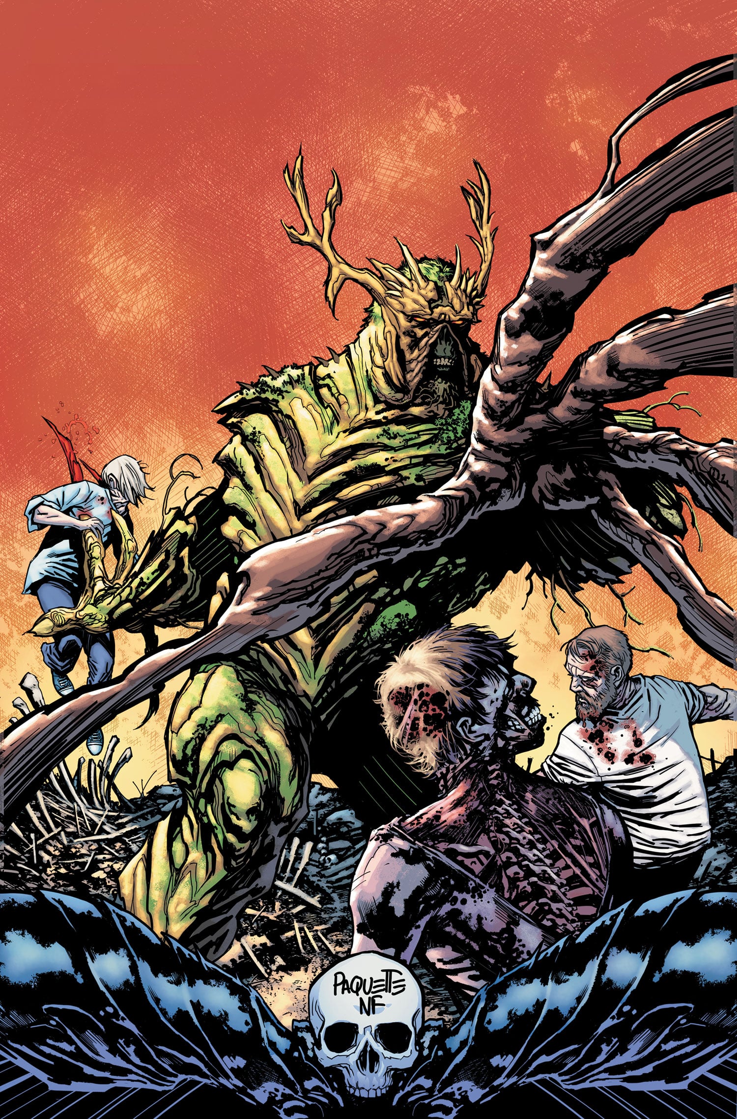In Swamp Thing Vol. 2: Family Tree, the Green has crowned the reborn Swamp Thin as their warrior king. His first challenge as king of the Green will come in the form of the Rot, a force of decay and death that attempts to suck down earth – and his former girlfriend Abigail Arcane – into its decrepit clutches. As this ancient force threatens to consume everything Swamp Thing has sworn to protect, he and Abby discover an old foe at the forefront of this evil that changes them forever and leads into the epic crossover with Animal Man, Rot World.