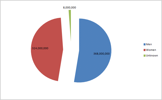 Globally, men are the majority of Facebook users, 52.57%, and no surprise the percentage increases for comic fans. Men account for 61.9% of the population. An increase, but not nearly the same as we saw in the US population.