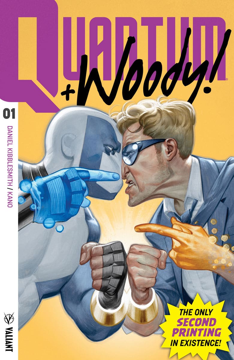 Valiant is proud to announce that Quantum and Woody! (2017) #1 – the FIRST ISSUE of the ALL-NEW and UNPREDICTABLE ONGOING SERIES from rising star Daniel Kibblesmith and dazzling artist extraordinaire Kano – has sold out at the distributor level in advance of its upcoming Wednesday, December 20th release date and will soon return to store shelves with a special, highly limited Quantum and Woody! (2017) #1 Second Printing!