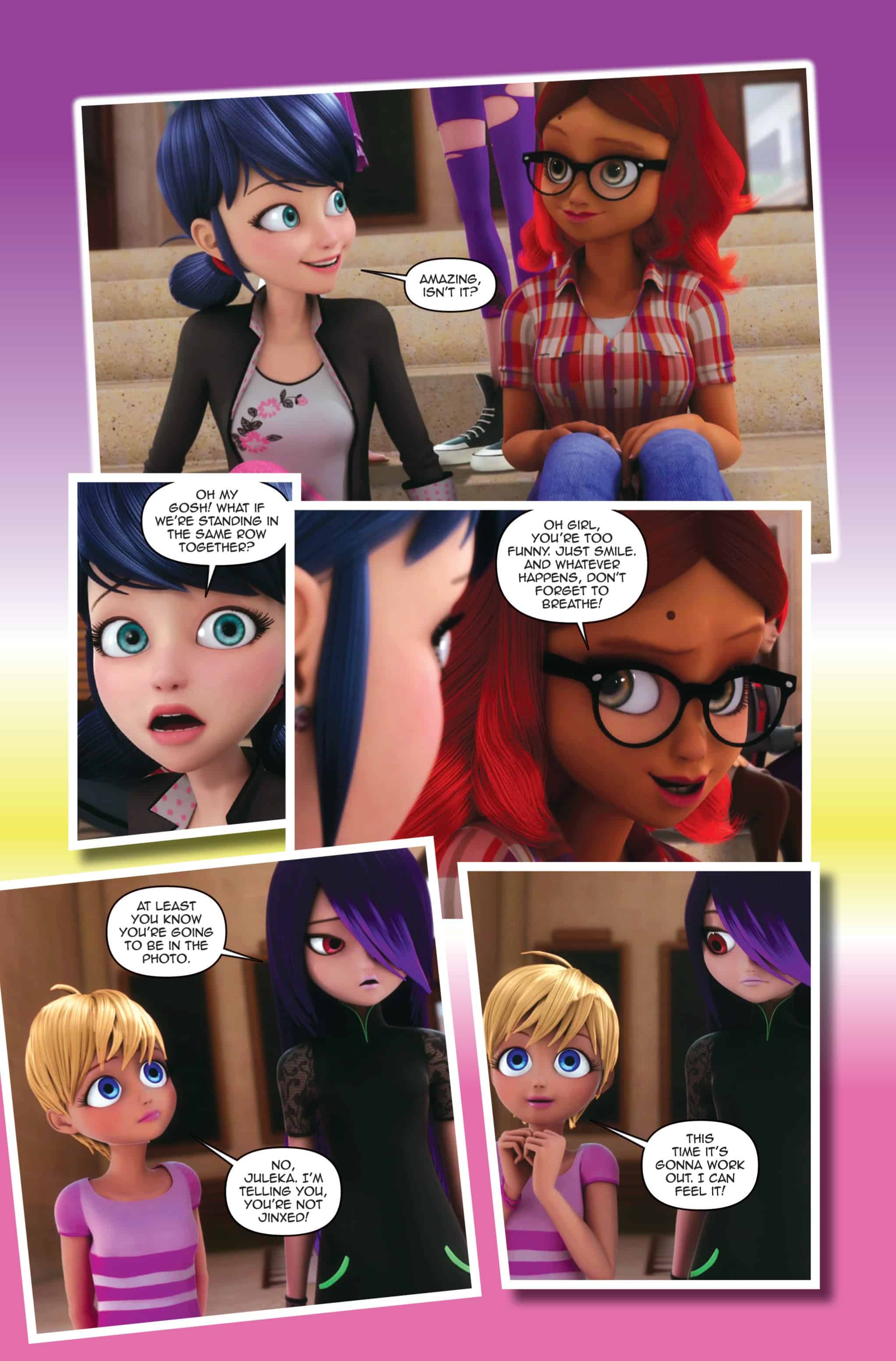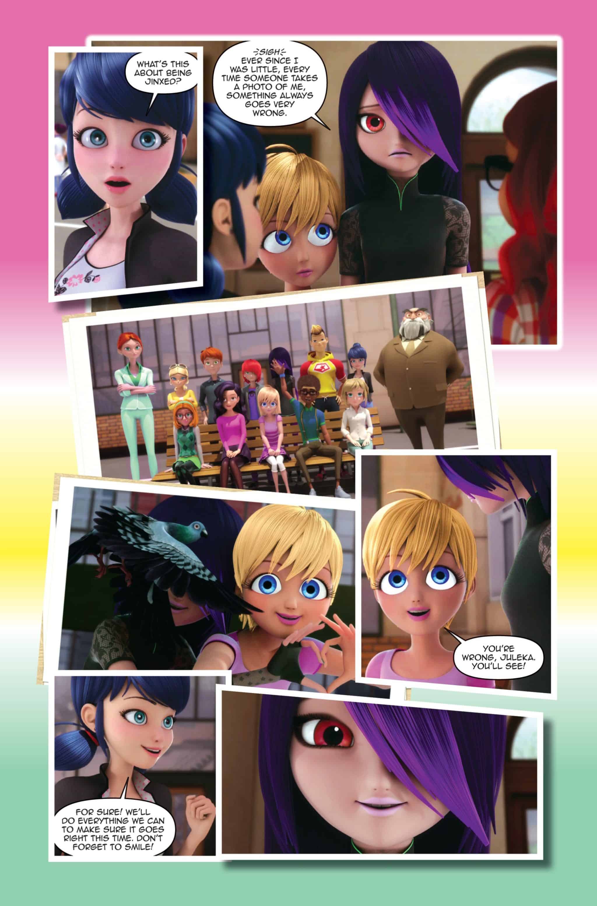 Juleka has always suffered from the “class picture day curse.” This year, Marinette has decided to help her break the curse. But she hadn’t taken Chloe into account. Excluded from the picture, Juleka gets akumatized and turns into Reflekta, determined to do everything for people to notice her, for a change, and turning everyone in her image, including Cat Noir! There’s only one superheroine left to save Paris: Ladybug!