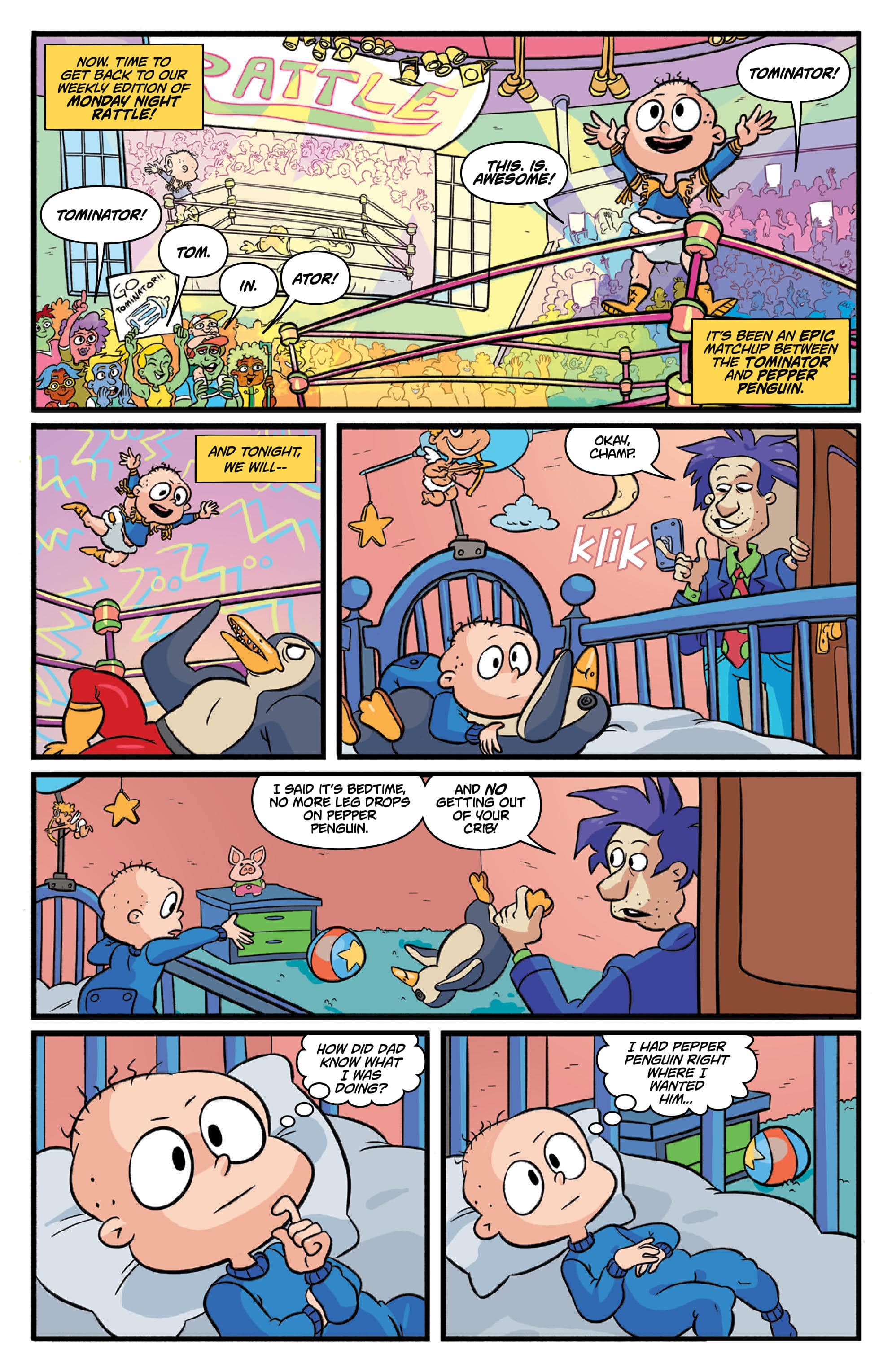 BOOM! Studio teams up with Nickelodeon to present all-new Rugrats adventures with the most intrepid toddlers to ever bust out of a playpen. Tommy, Chuckie, Phil, and Lil have noticed something—they are being watched. Somehow their parents can see every little thing they can do. They’re going to have to find a way to have fun while avoiding the electronic eyes of the babycam!