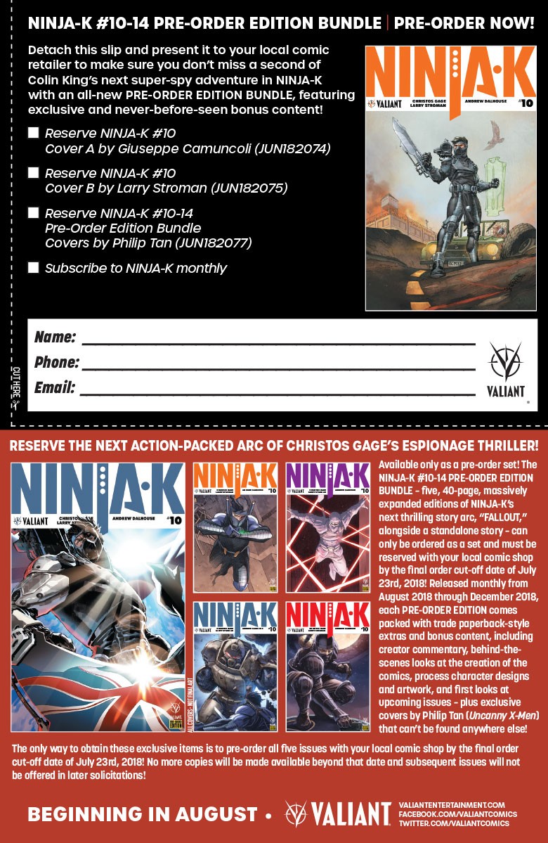 Now, for the first time, the metal-crunching saga of MI6’s one-man, super-powered strike force – and his tragic fall from grace – can finally be told as renowned writer Christos Gage (Netflix’s Daredevil) teams with comics legend Larry Stroman (X-Factor) to declassify the next standalone shadow-laden chapter in the history of Ninjak’s fellow Ninja Programme agents!