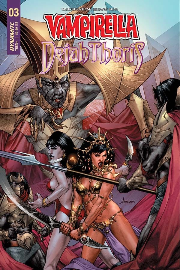 Dejah and Vampirella may have reached an understanding with the Black Martians, but complications continue when the self-styled goddess Issus arrives with an offer that could save Vampirella’s people… though the goddess’ price would change Martian society forever—starting with Dejah Thoris!