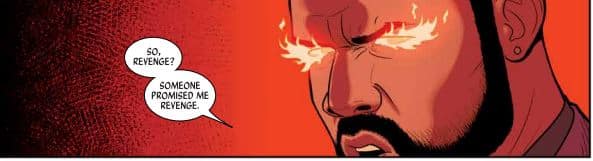 In recent issues, Baal’s own proclivity for sacrifice has popped up ranging from children to a whole stadium, and it shows how much of a master manipulator Ananke is. She can get others (See Woden throughout the series.) to play a smaller version of her game and have them destroyed for it. Baal and Inanna reunite in this issue, but it’s one of the saddest pages of the series. McKelvie gives Inanna a sick, half-dead look on his face as he realizes that Valentine Campbell is the god of fire and child sacrifice, Baal Hammon. Wilson nails the idea of fiery vengeance in his colors on the last panel of that page as he just wants to take Ananke/Minerva/who gives a fuck out because she put his family at risk. His motivation have become very primal