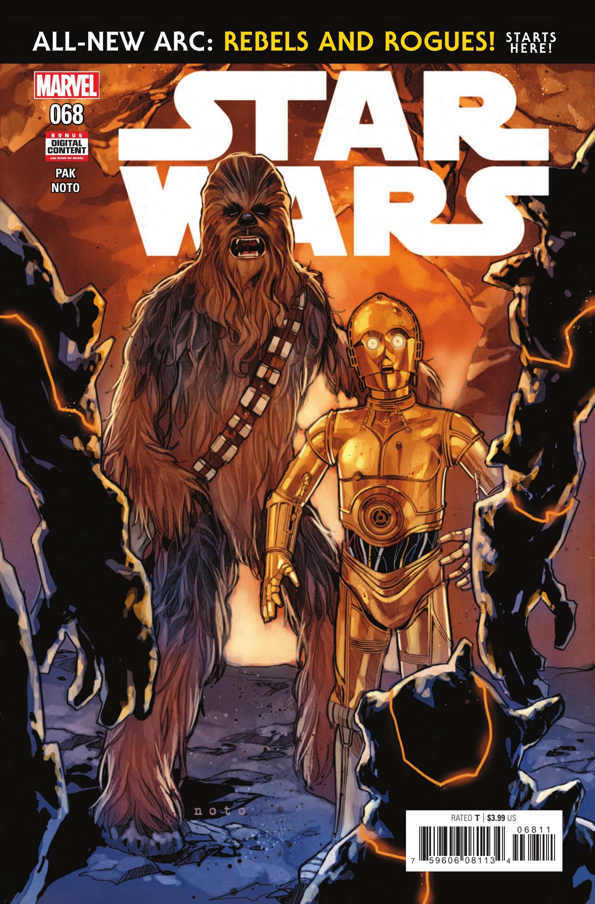 REBELS AND ROGUES! “The evil lord Darth Vader, obsessed with finding young Skywalker, has dispatched thousands of remote probes into the far reaches of space…” That’s right – you remember the opening titles of The Empire Strikes Back. Now find out what happened just before, as Luke and his friends launch a desperate, three-pronged mission of deception to keep the Empire from finding their new rebel base in a brand-new epic from the new ongoing team of Greg “PLANET HULK” Pak and Phil “POE DAMERON” Noto! Featuring Han and Leia undercover in a noir world of romance and danger! Luke and R2 facing off against the Executor in a single X-Wing! And Chewie and Threepio, the greatest team-up you never knew you always needed!