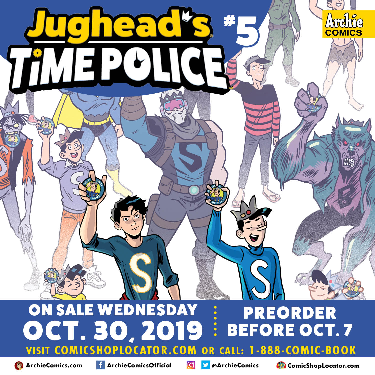 Jughead’s unite in the epic conclusion! Get an early preview of Jughead’s Time Police #5!