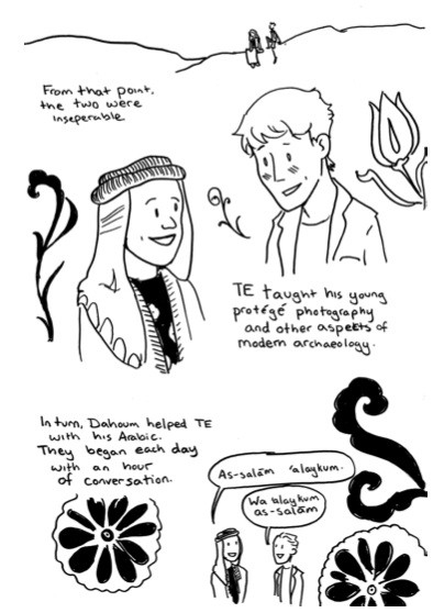 I rather love this approach because they’re very relatable moments between the history lessons about T.E. Lawrence. Not that those are bad. In fact, they’re quite intriguing and give a human portrait of the man; same with Barnett. I feel like I’m on the journey and learning with her instead of being lectured. It’s fun, exciting, and makes learning about Lawrence something more adventurous than reading from a textbook.