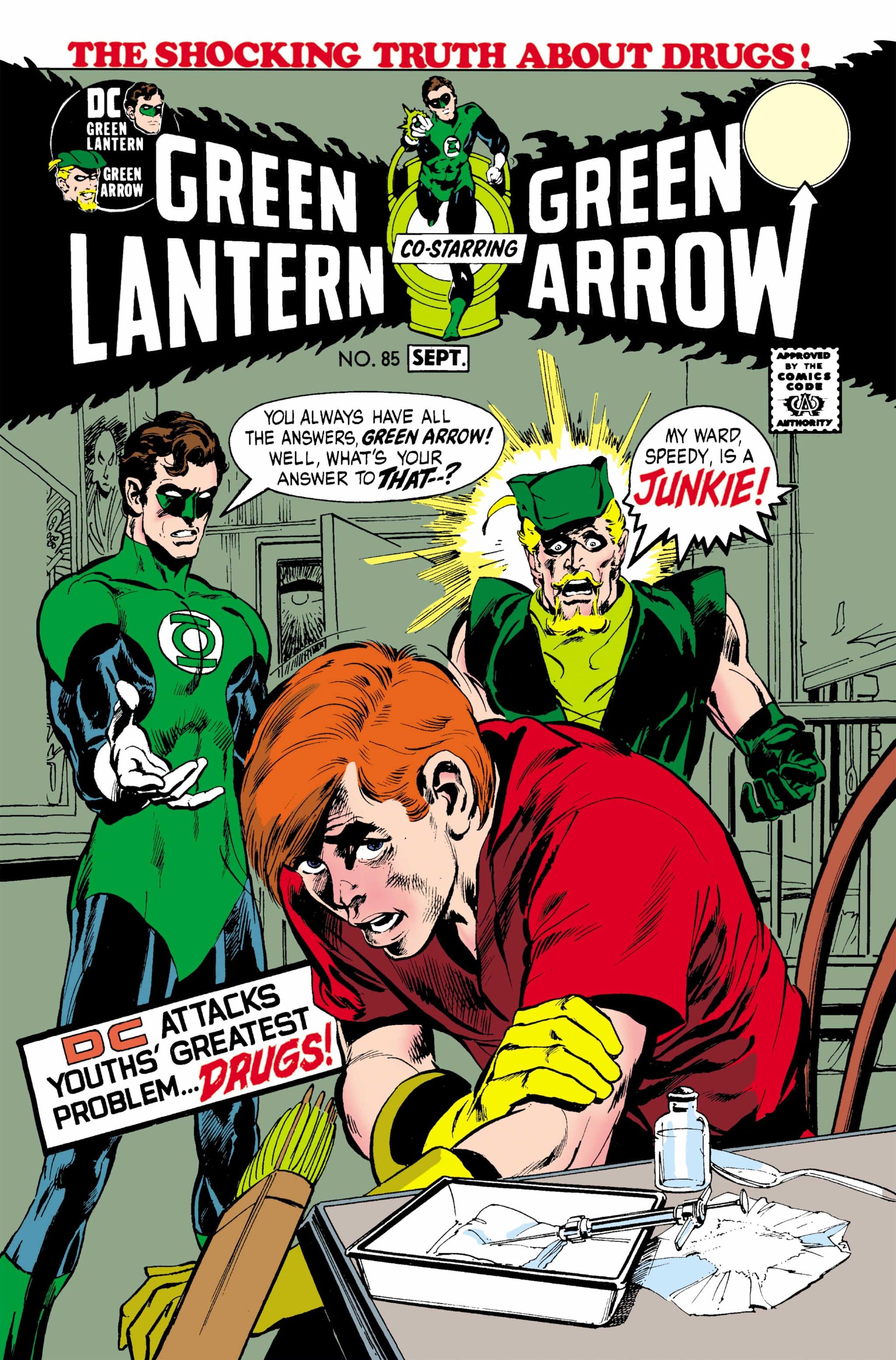 In this award-winning tale from 1971, Green Arrow discovers that his former sidekick, Roy Harper, is hooked on heroin! Plus, Sinestro tries to exert mental control over Hal Jordan in a story originally published in Green Lantern #11!