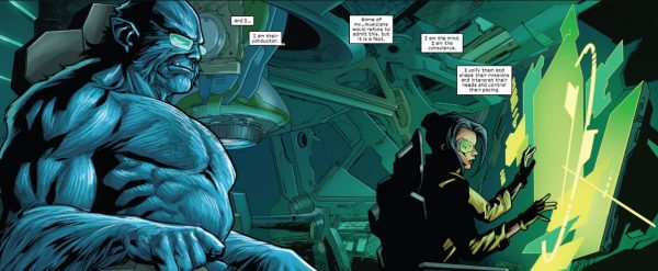 And what made X-Force such an interesting read other than its continued use of the body horror aesthetic (Segovia has a much smoother art style than Joshua Cassara though.) is that Beast is sugarcoated to become some kind of heroic or anti-heroic figure. He’s just a powerful mutant, who uses his intellect and occasionally, brute strength and athletic ability to protect Krakoa’s interest. He’s a wetwork operation or a secret war wrapped up in blue fur and glasses.