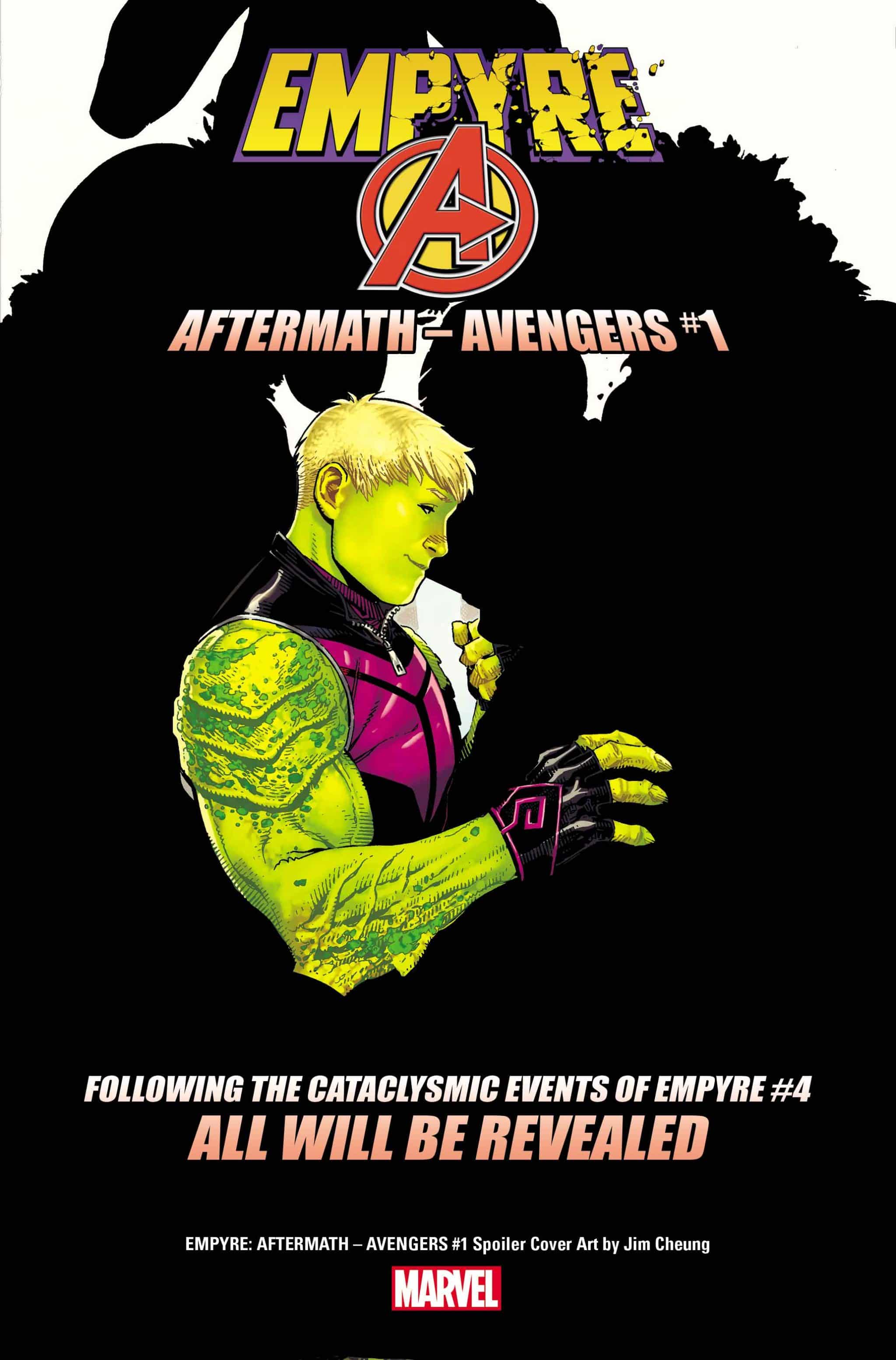 Empyre: Aftermath Avengers #1 follows the events of Empyre #4 and is written by Al Ewing, art by Valerio Schiti, and a spoiler cover by Jim Cheung. It comes to stores in September 2020.