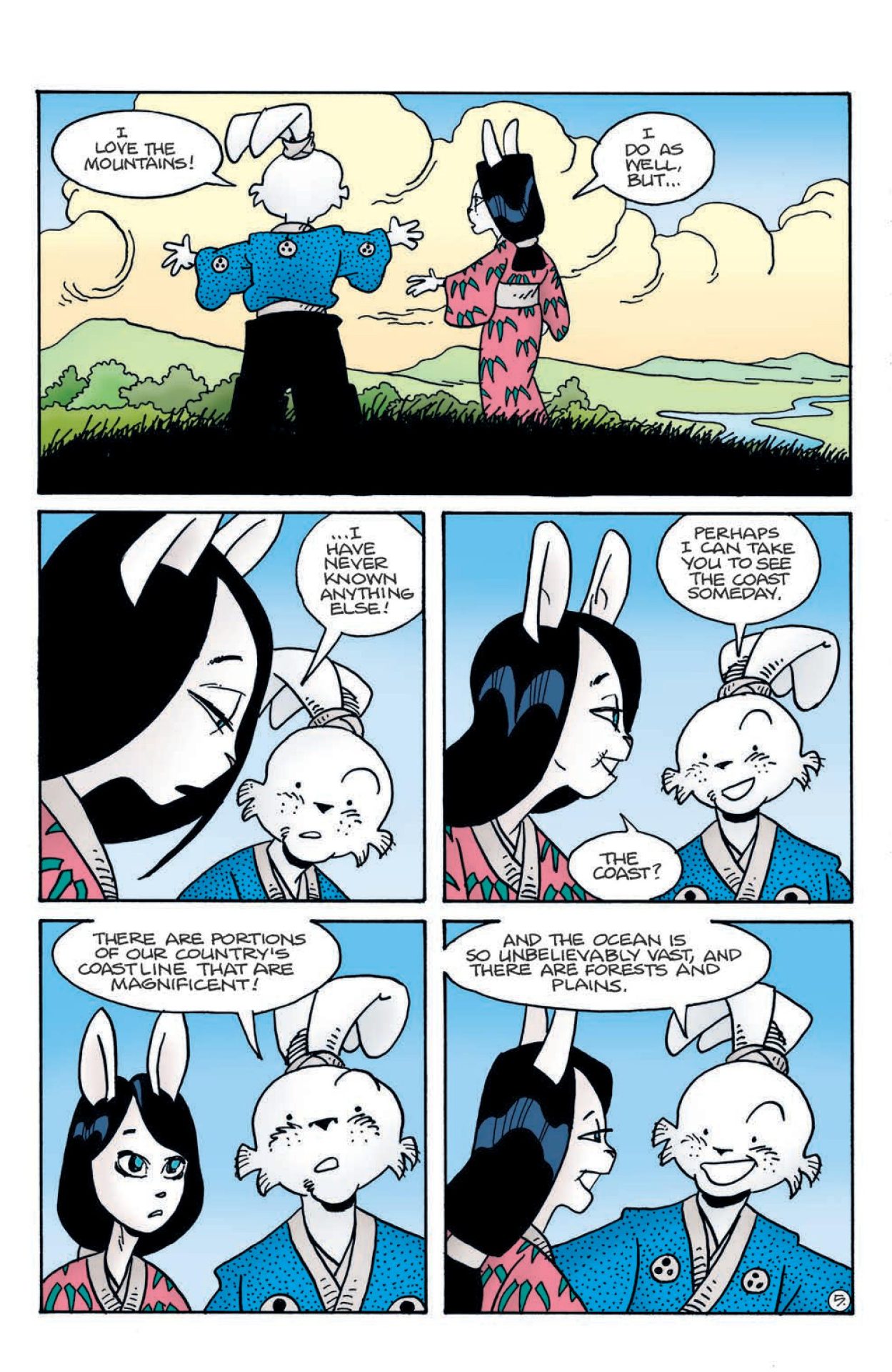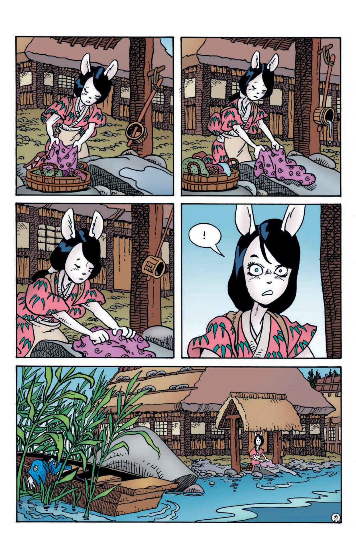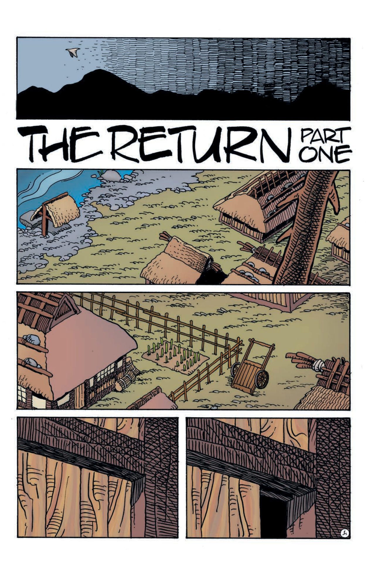 “The Return” Part 1 of 43. Usagi is back in his home province for a pilgrimage to his late lord’s gravesite, however wearing the Mifune clan crest in Lord Hikiji’s territory has made him an enemy. Now beaten and almost near death, he has made his way to the one place he had been avoiding-the village in which he grew up. Bittersweet memories awaken with his long-time love, until the village becomes embroiled in a plot to assassinate an emissary of the shogun.