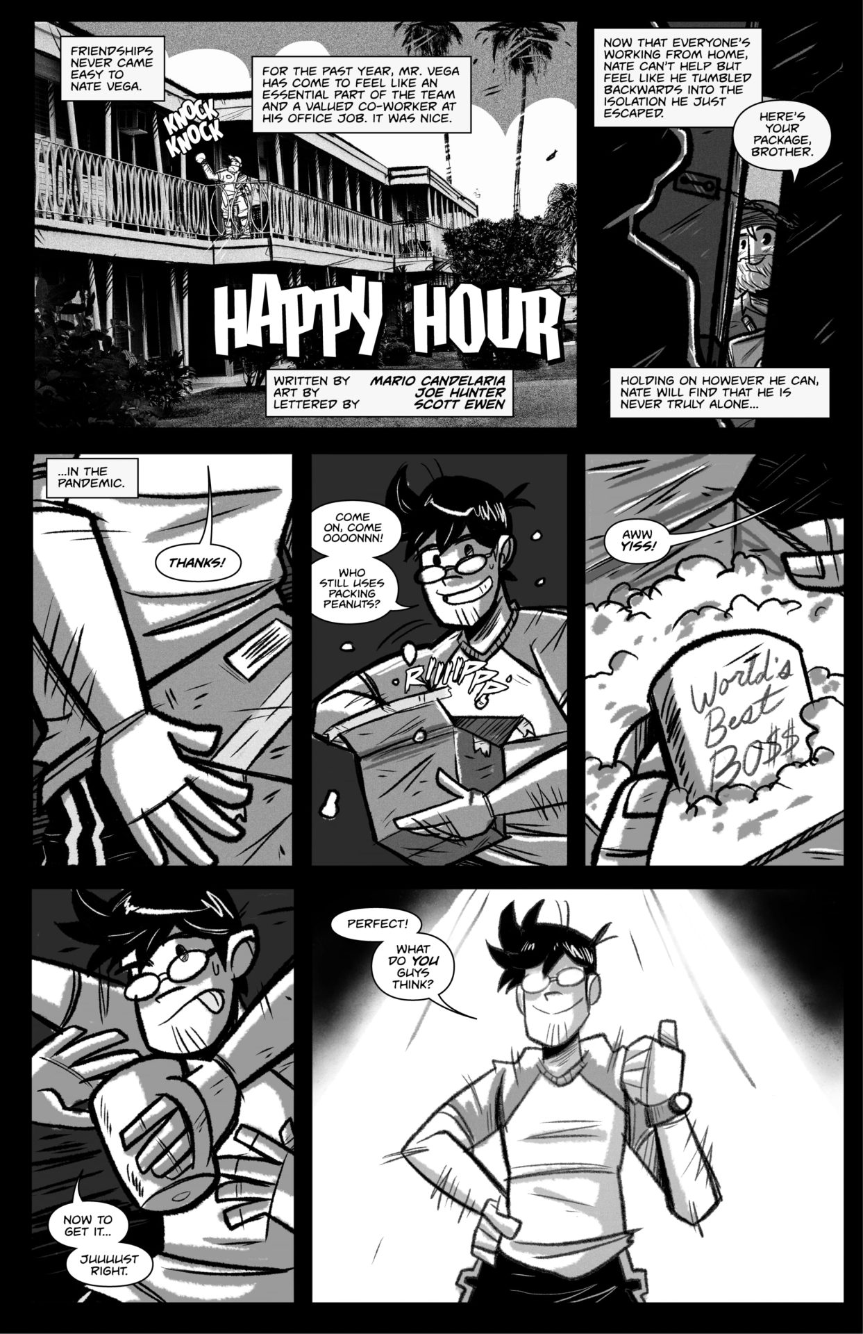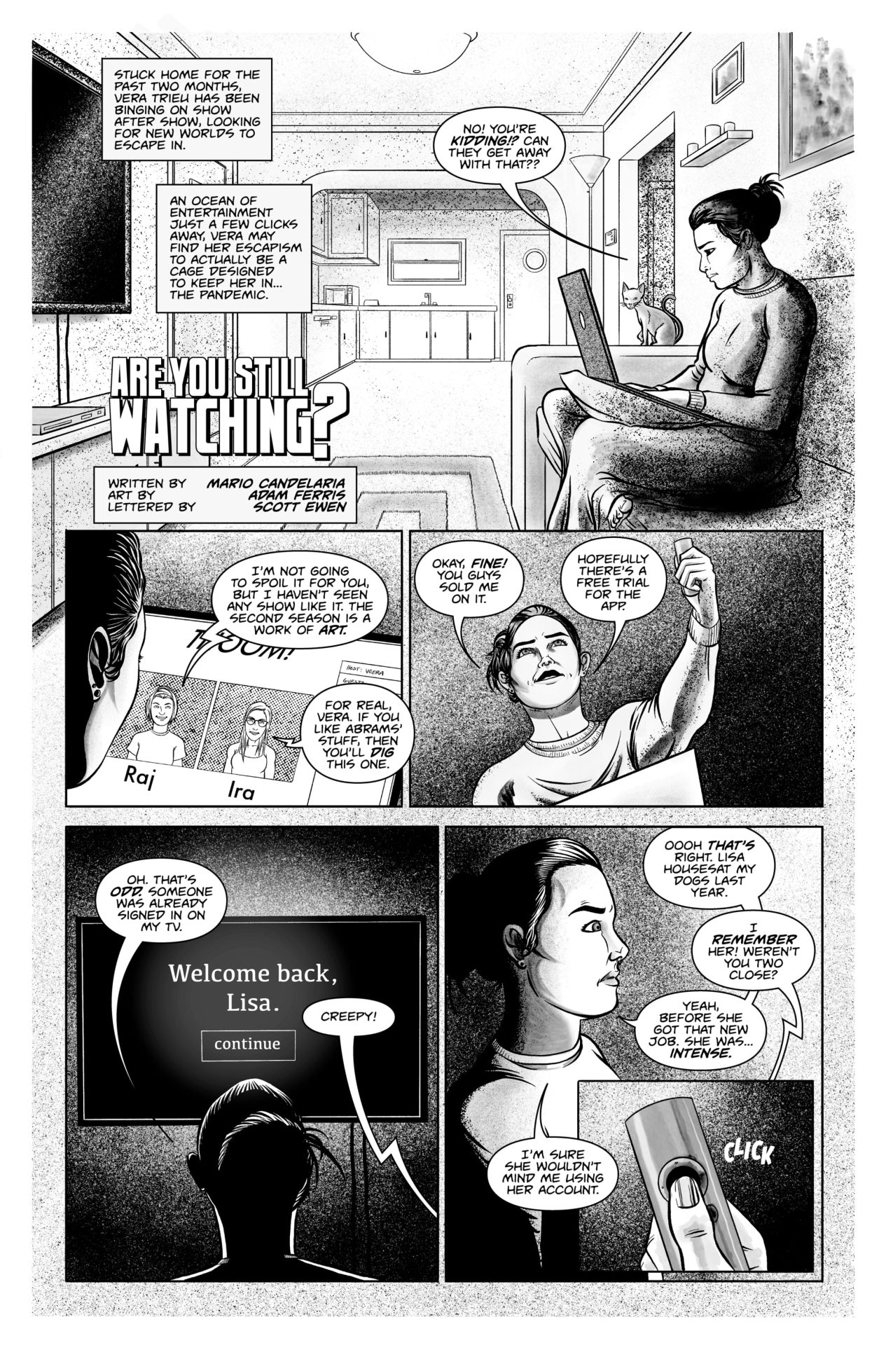 Writer and Comedian Mario Candelaria leads a stellar team of nine up-and-coming artists from the indie comics scene with seven scintillating stories that are Tales From The Pandemic: “Paper House” by Andy Michael, “Lips” by J. Paul Schiek, “Flight 616” by Randy Haldeman, “Happy Hour” by Joe Hunter, “Litterbug”, Dan Buksa, “Stride” by Sachi Ediriweera, “Are You Still Watching?” by Adam Ferris. Cover by Skylar Patridge and letters by Scott Ewen, with a foreword and afterword by MLS Cup winning soccer player, Danny Earls.