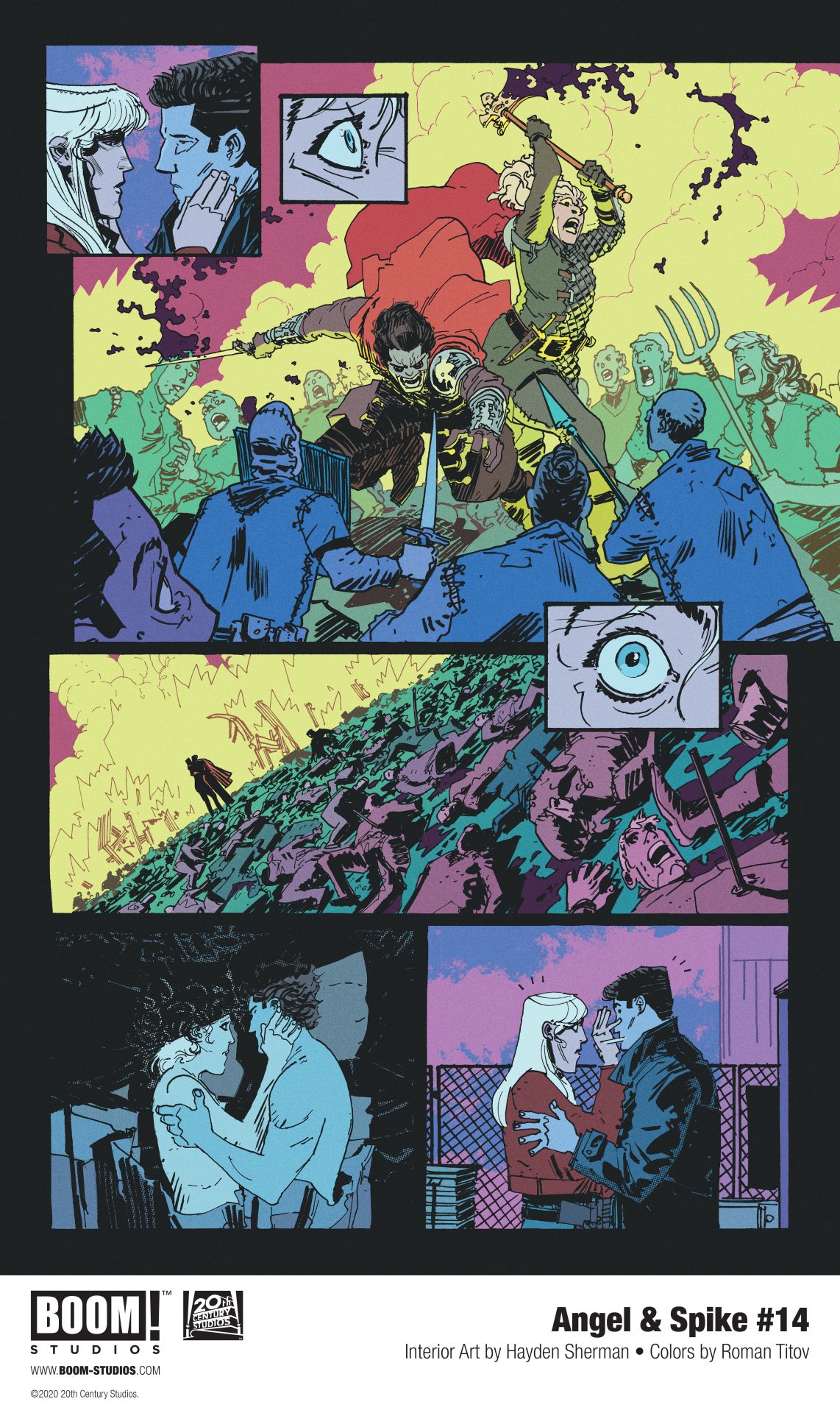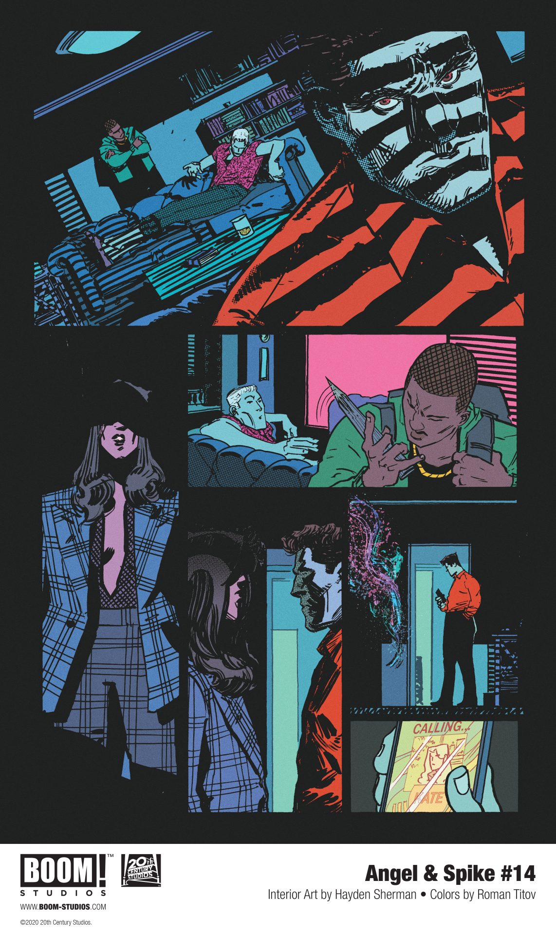 BOOM! Studios has revealed a first look Angel & Spike #14, featuring a first appearance of Daniel “Oz” Osbourne and a brand new creative team, from acclaimed writer Zac Thompson, artist Hayden Sherman, colorist Roman Titov, and letterer Ed Dukeshire along with visionary writer and director Joss Whedon, available on September 23, 2020.