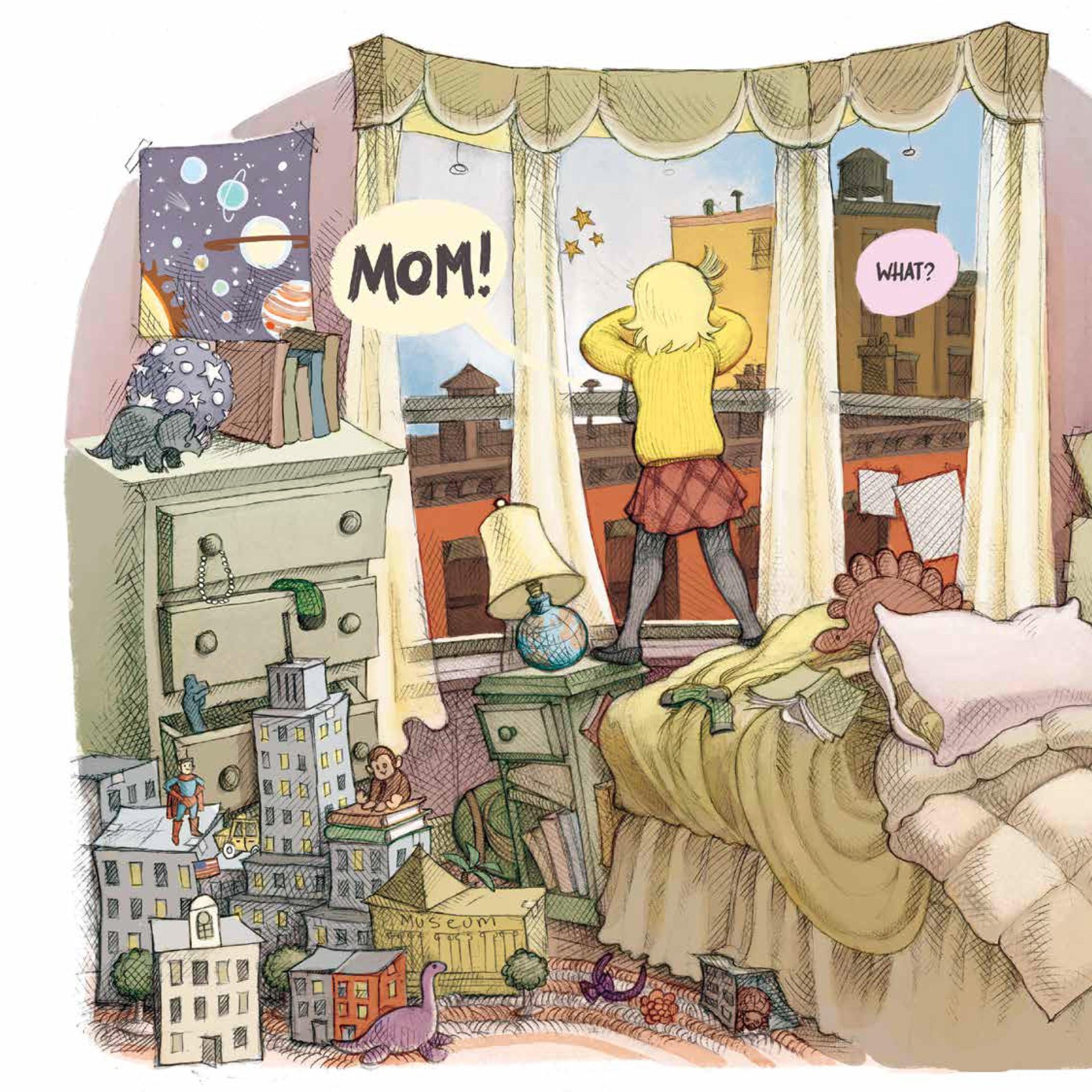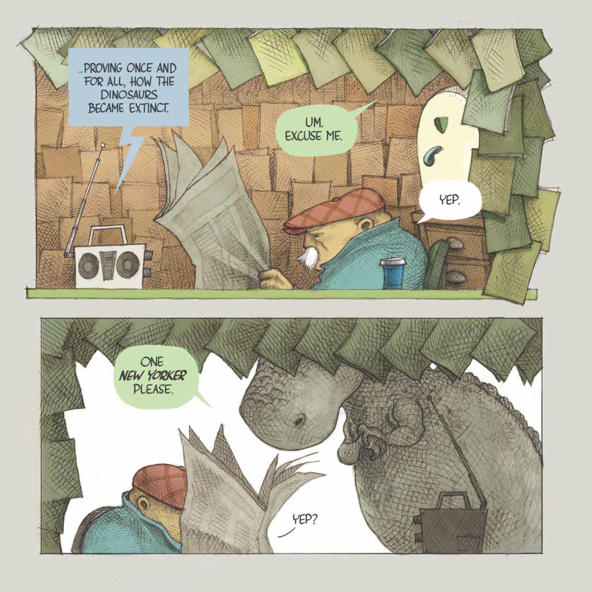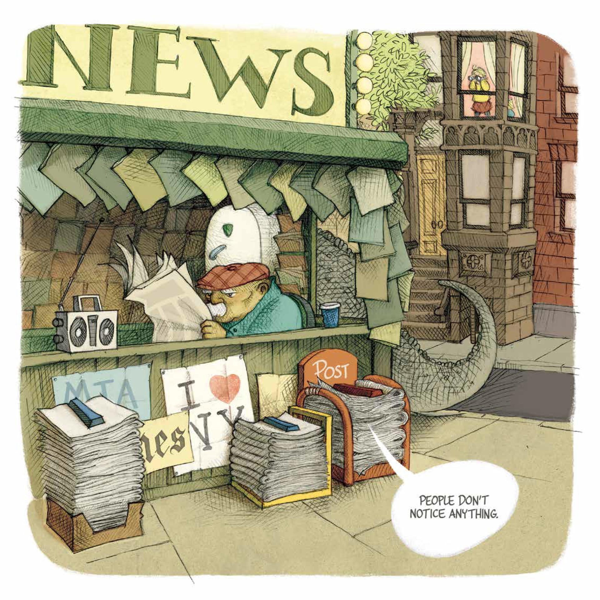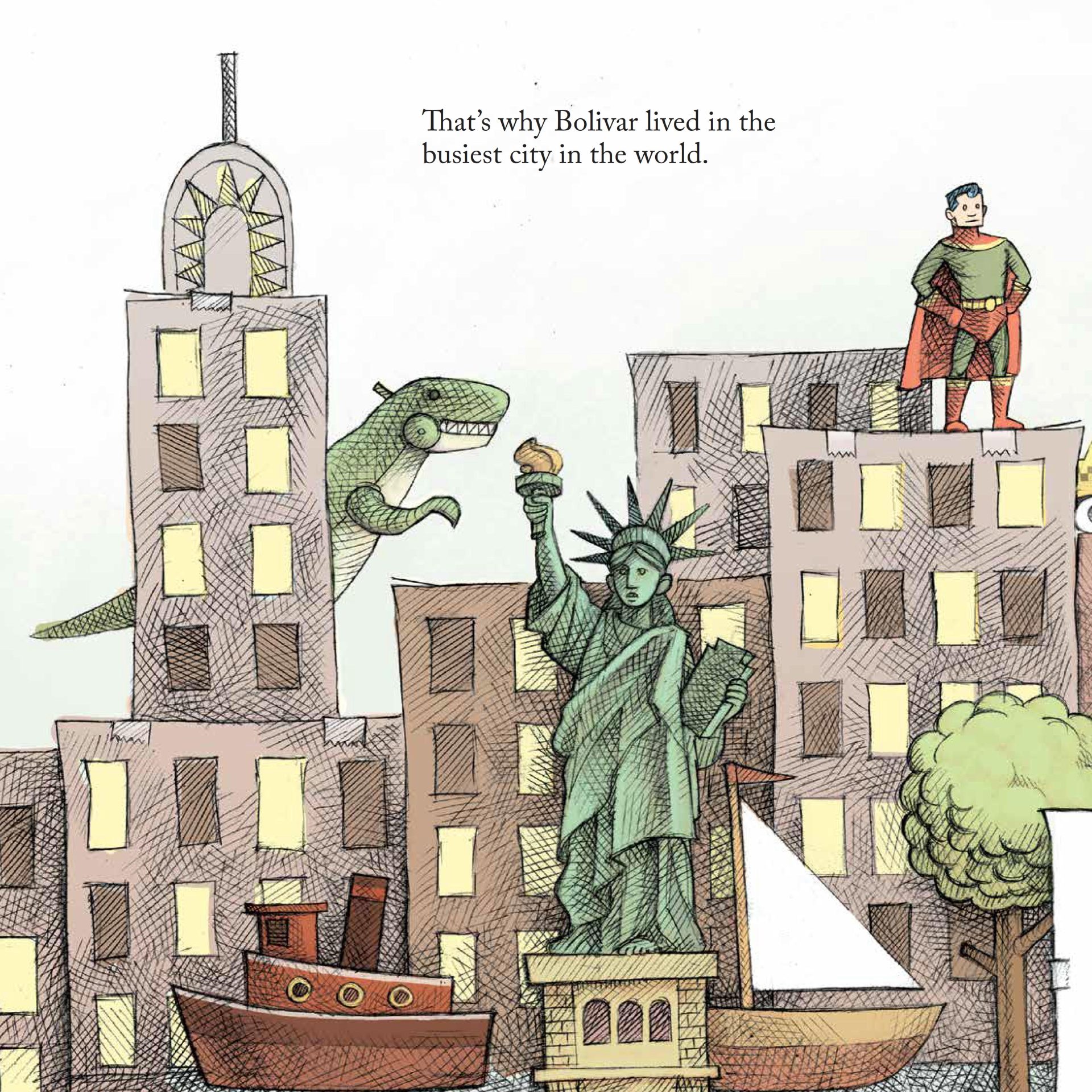 Sybil knows that there is something off about her next-door neighbor, but she can’t seem to get anyone to believe her. Everyone is so busy going about their days in the busy streets of New York City that they don’t notice Bolivar. They don’t notice his odd height, his tiny arms, or his long tail. No one but Sybil sees that Bolivar is a dinosaur!