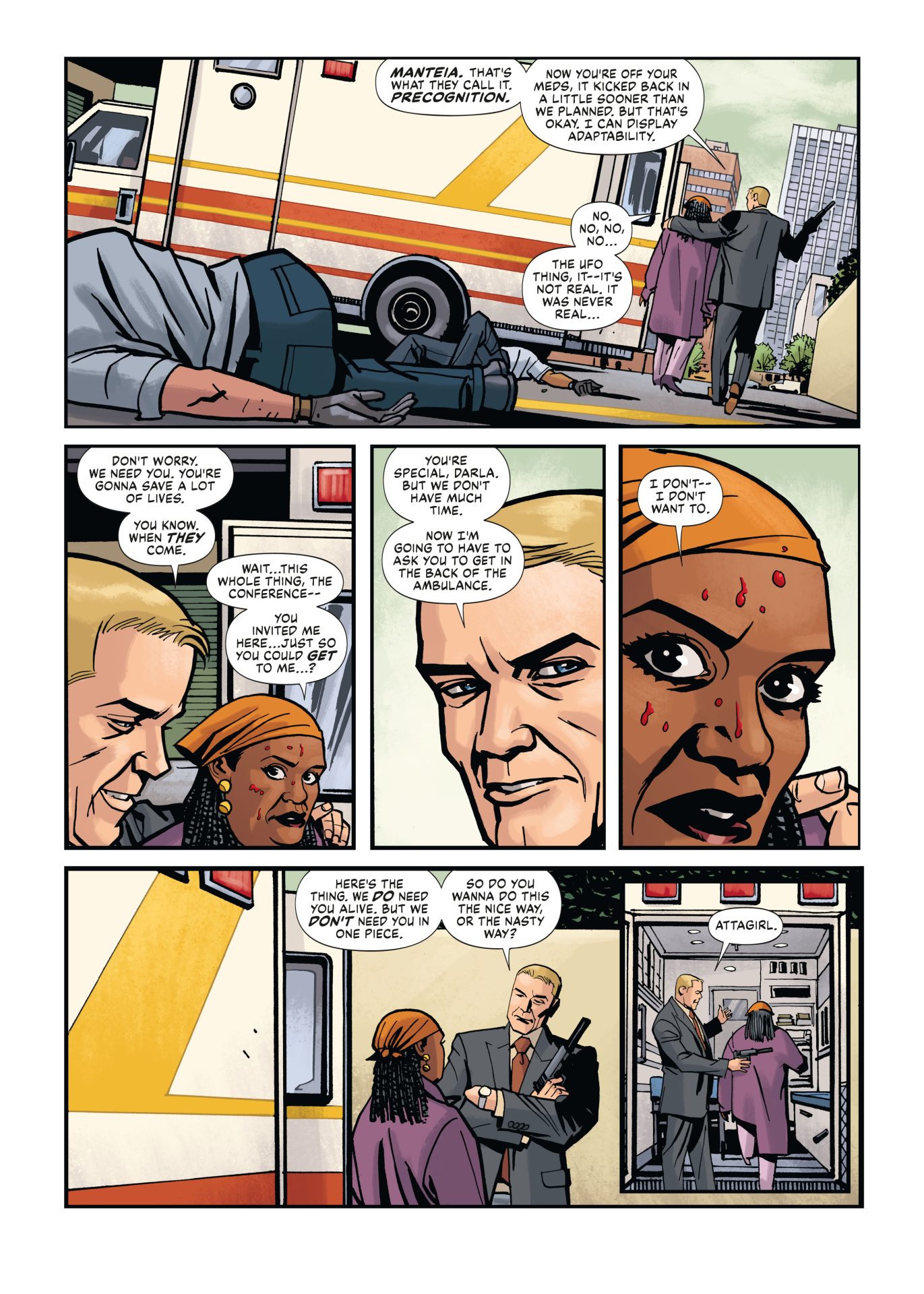Darla Clemenceau has been plagued by apocalyptic visions, ever since she was abducted by a UFO as a child. Now, she’s ready to put it all behind her and move on with her life. But what if it’s all true? A dangerous cult militia is prepping for the end of the world, and they see Darla as the key to their survival…