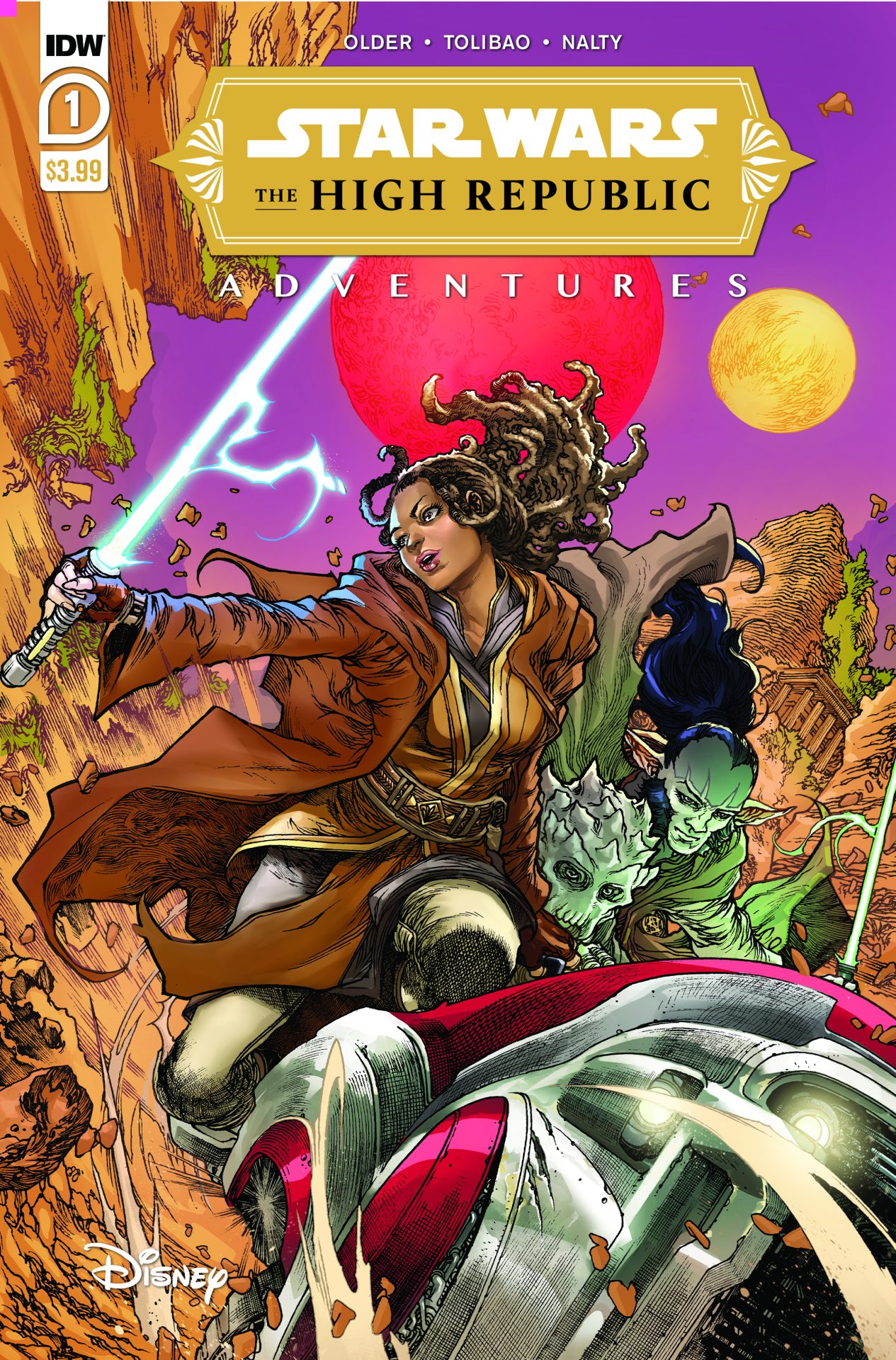 This is exactly why the books filled that crucial void that fans felt. It brought us back to that universe and reminded us of the stakes our heroes had. It is within those books, an auteur like Timothy Zahn gave fans a heartfelt love letter within his sprawling novels. I do enjoy the new ones, but it exists within a world where opportunities to consume Star Wars are numerous. That still includes books but also now podcasts, TV shows, and movies. In IDW Publishing‘s Star Wars: The High Republic Adventures #1 we find some of those same ghosts within these stories.