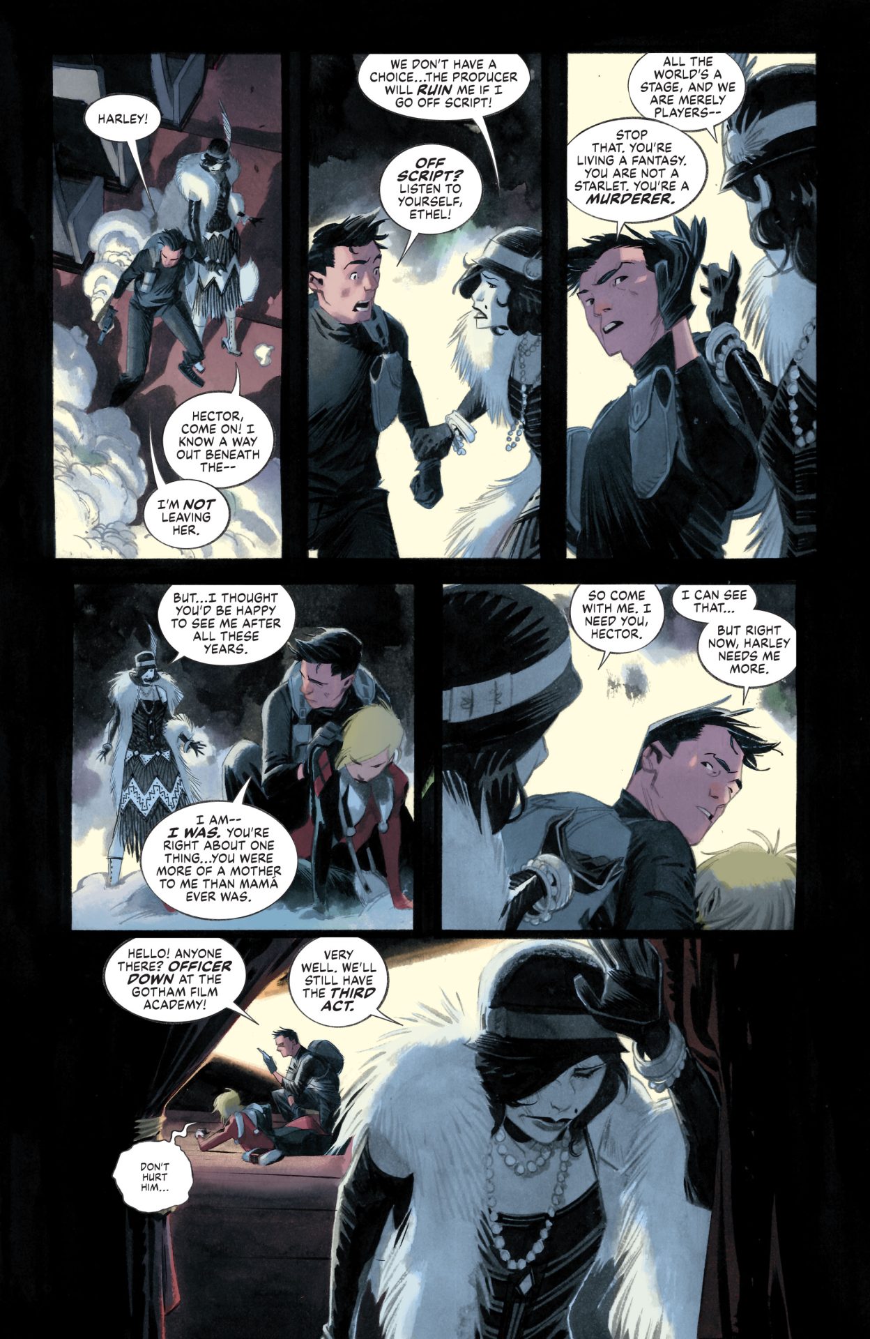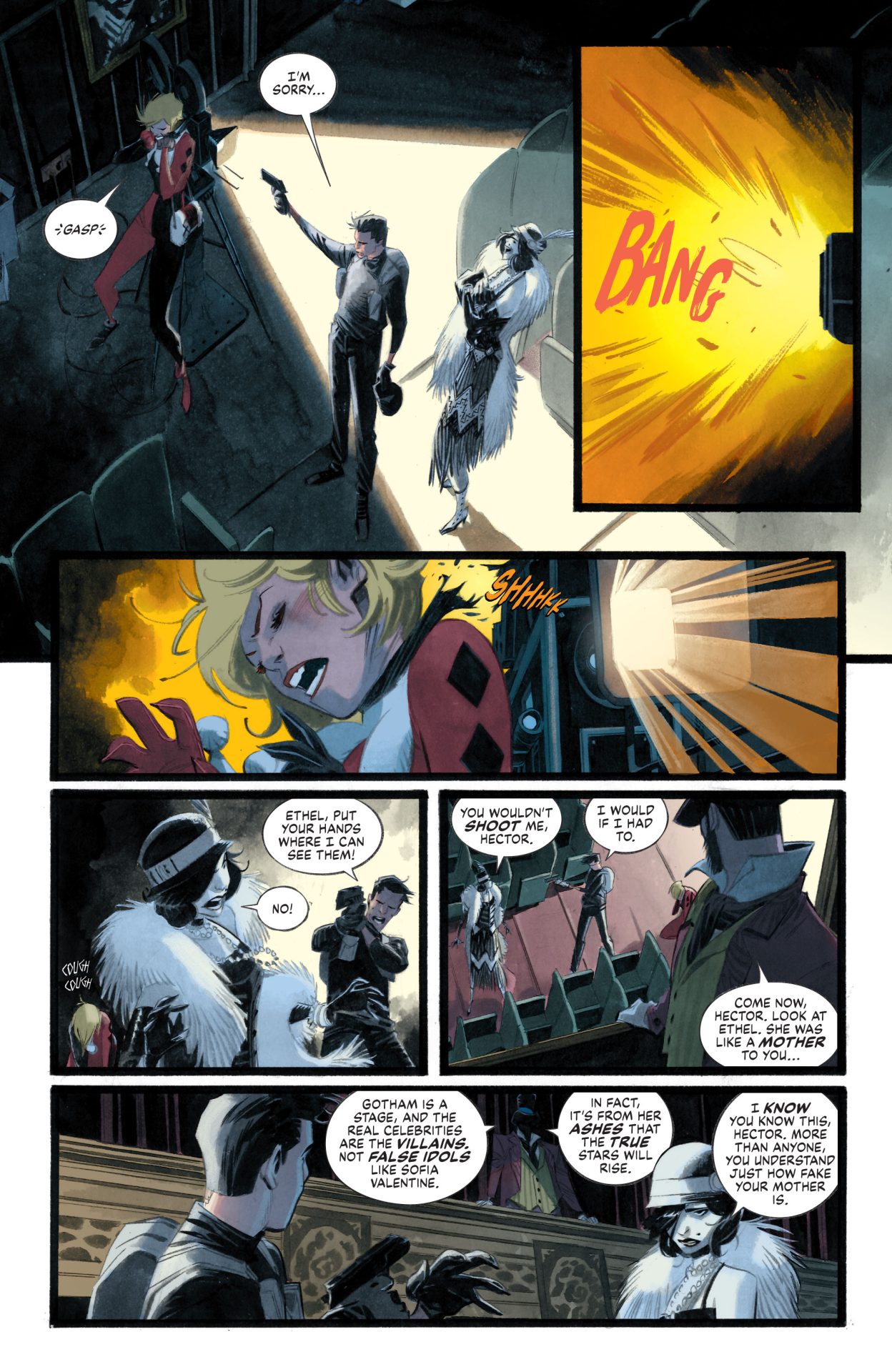 The Producer’s scheme is in motion, and the GTO is on high alert as Gotham’s hope of a peaceful new horizon begins to collapse. Rattled and recovering from a close encounter with Starlet, Harley examines whether her complicated past with villainy is a burden or a boon to her new identity. She weighs two final options: break all ties and retire to a quiet life, or embrace the chaos, risk, and responsibility of protecting the people and the place that created her. The choice itself may be fantasy, as a targeted attack on Harley ends in tragedy and drives Bruce to a reckless decision that could extend his prison sentence indefinitely.
