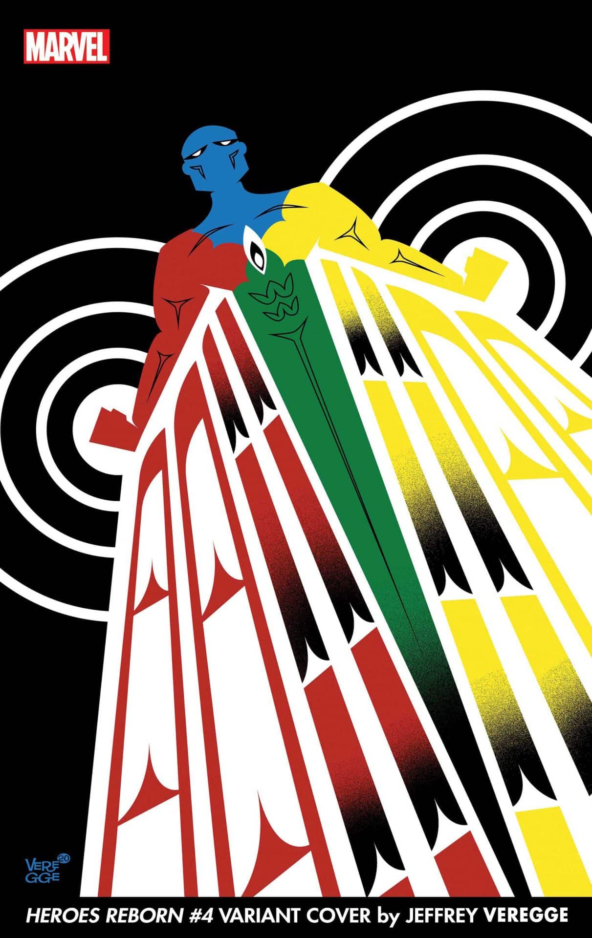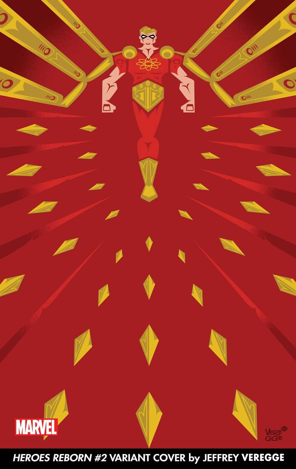 This May, fans will be presented with a new vision of the Marvel Universe in Heroes Reborn. Crafted by superhero masterminds writer Jason Aaron and artist Ed McGuiness, this series will present a world without the Avengers where the Squadron Supreme had to rise up to take their place. To celebrate this grand venture into a new age, Marvel is proud to debut a new series of variant covers by renowned artist and writer Jeffrey Veregge. This extraordinary collection will grace the covers of each issue of Heroes Reborn, giving readers a unique view of the new Marvel Universe with depictions of Hyperion, Blur, Doctor Spectrum, and more in Veregge’s iconic Formline style.