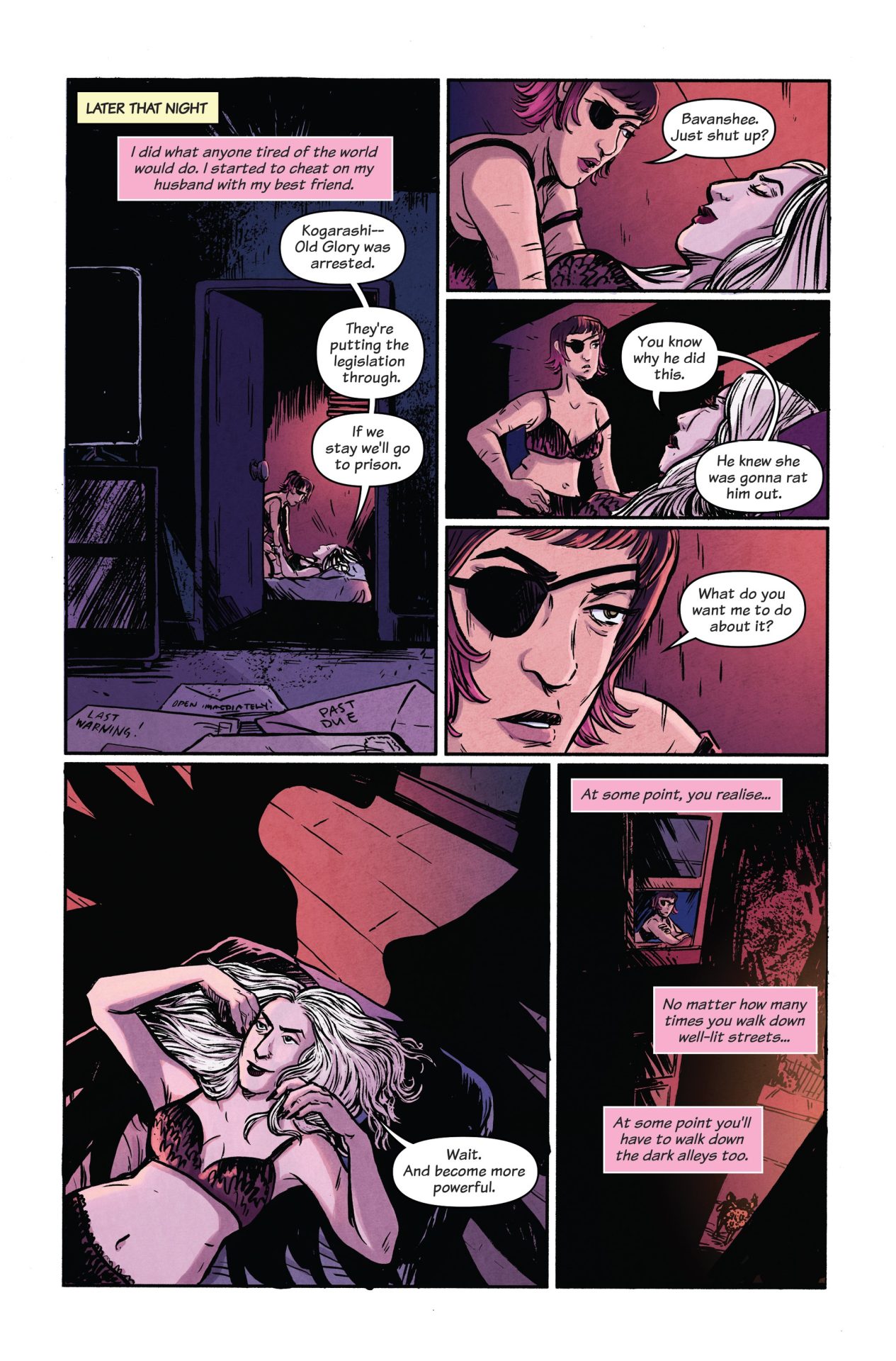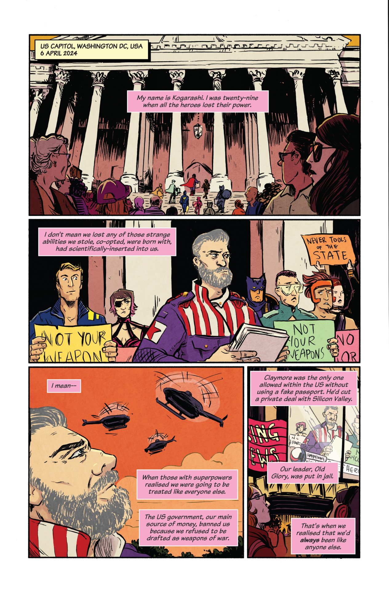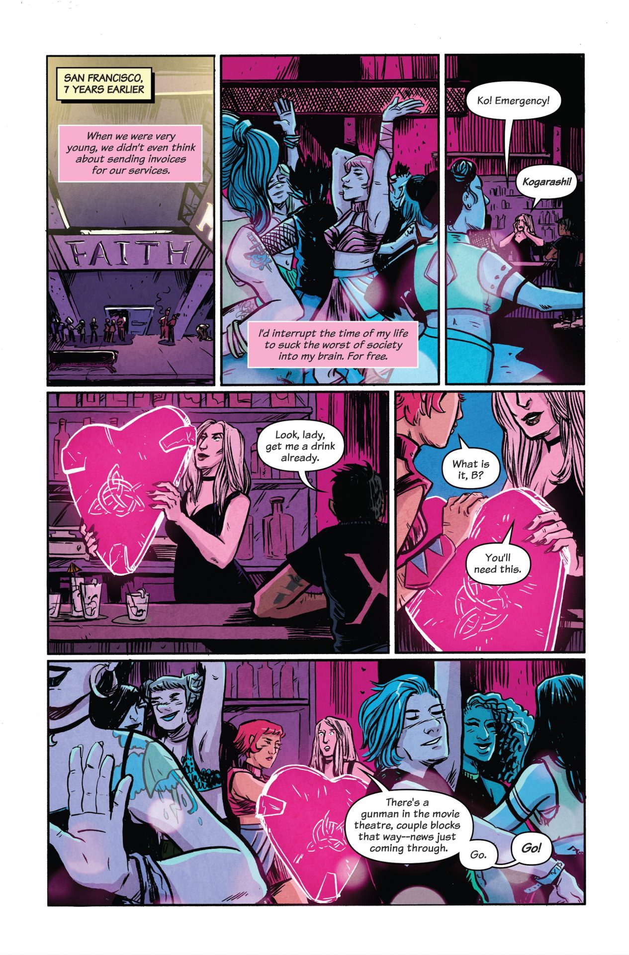Partdark comedic superhero drama, part dystopian political thriller, The Final Girls is set six years after the hero collective the Scottish tabloids named “The Final Girls” —Kogarashi, Bavanshee, Selkie, and Ash—left civil service and disappeared into the less fraught alleyways of Scotland. When Scathach, the world’s most powerful working hero, asks her retired peers for help, they secretly agree to deal out punishment on another hero in the public eye. When the weapon of publicity is wielded, it threatens to kick up all of their personal traumas, past and present. What does justice look like when violence isn’t enough?