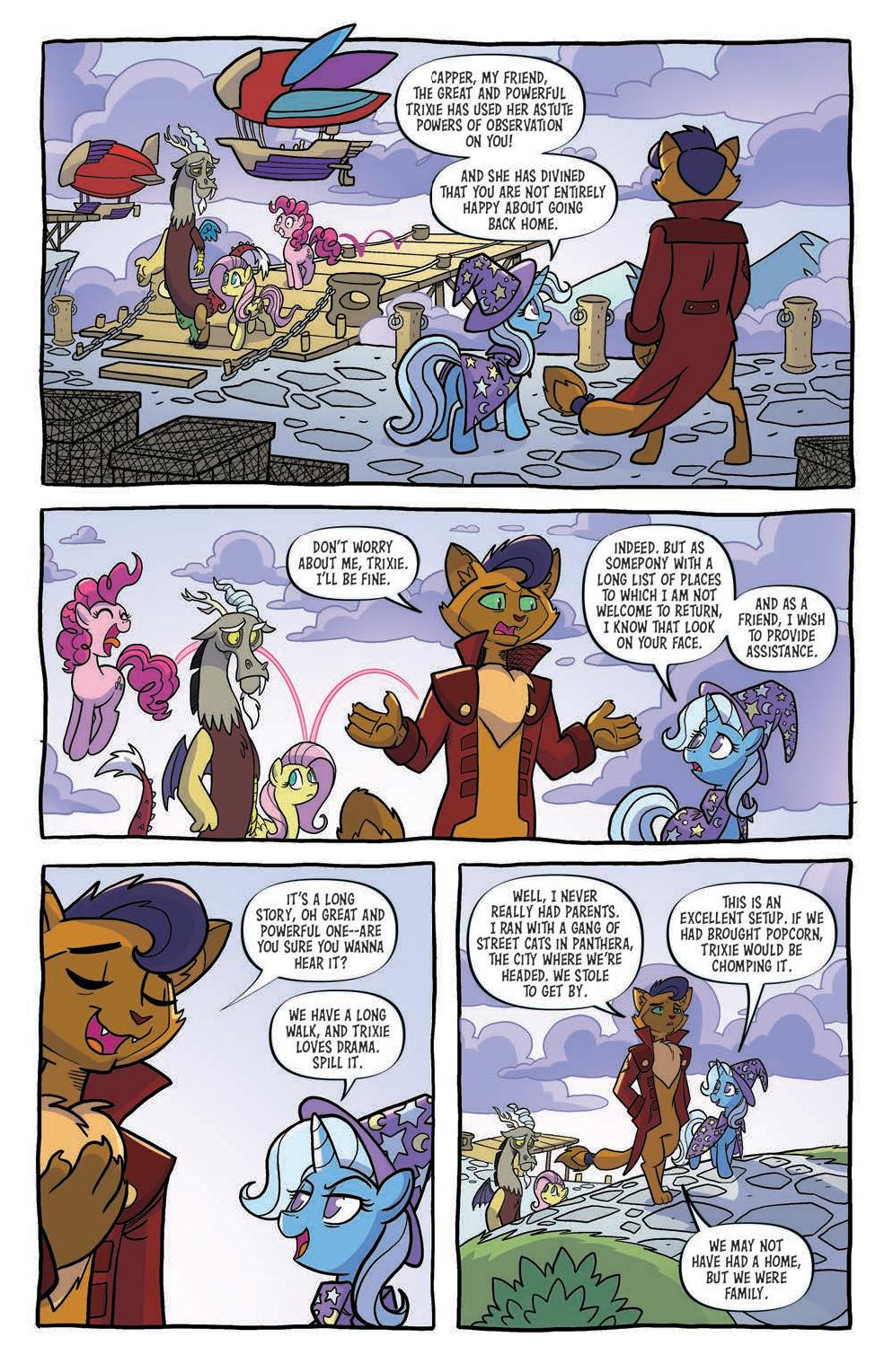 Twilight Sparkle has sent our favorite fillies on a journey of outreach all over Equestria! But when Fluttershy, Pinkie Pie, Trixie, Discord, and Capper visit Abyssinia, their trip turns sour fast-they weren’t supposed to end up in jail! Good thing Capper’s old friends are pretty good cat burglars…