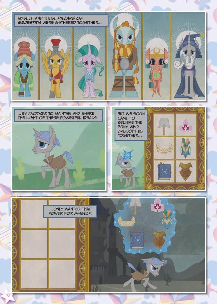 When Sunburst discovers the lost journal of Star Swirl the Bearded, he shares it with Twilight Sparkle. Together, they find out how the sorcerer and several other of Equestria’s heroes, known as the Pillars of Old Equestria, sacrificed themselves to defeat the evil Pony of Shadows. After researching more about the heroes’ disappearance, Twilight believes that the Pillars are still alive and trapped in limbo and becomes obsessed with trying to free them, but it might not be such a good idea!