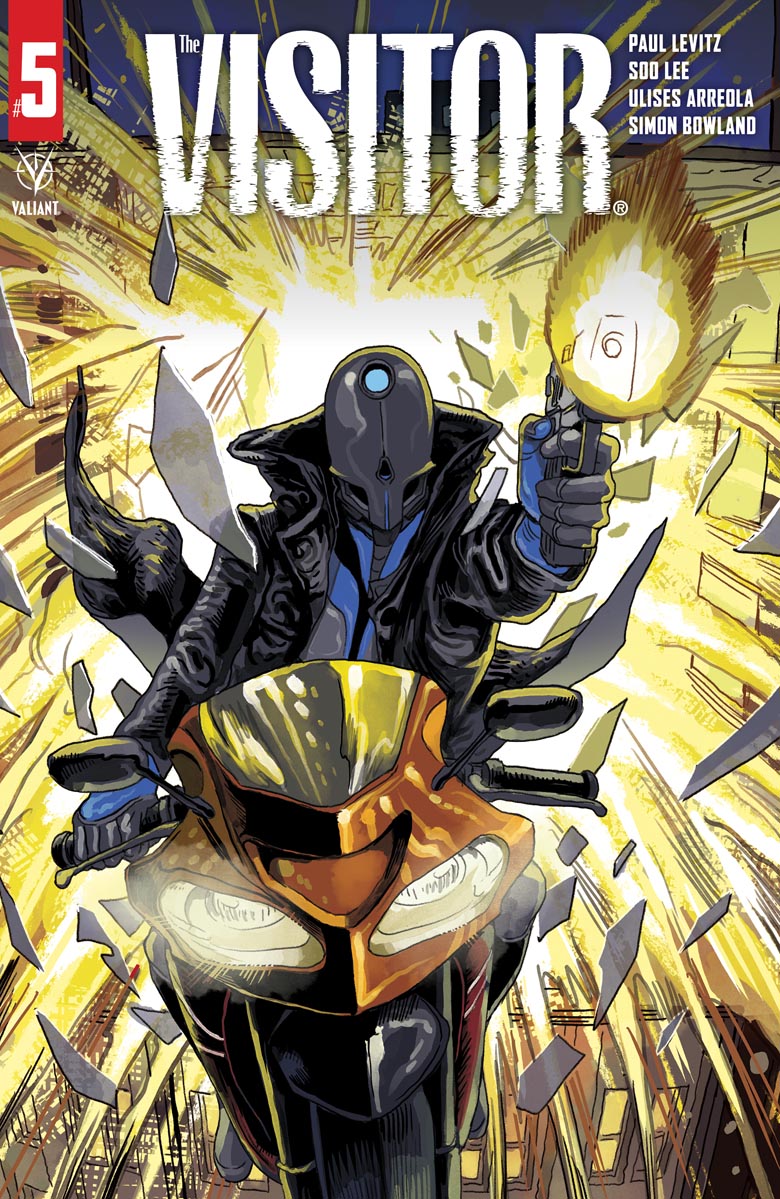 The Visitor #5 is written by Paul Levitz and features artist MJ Kim, colorist Ulises Arreola, and letterer Simon Bowland. I previously wrote that “[the comic] follows the titular character as he’s trying to eliminate something that the Japanese scientists he’s hunting are working on and the UN Security agent Dauber assigned to protect them. Levitz keeps things entirely believable when the scientists keep frustrating Dauber’s efforts to keep them safe by insisting on their secrecy as they all underestimate the Visitor.” It’s still true. so I’m leaving it here because I don’t need to update the summary from the second to the fifth issue, really. The chase is now just a little further ahead, although with the fifth issue of The Visitor we finally understand what the program is that the scientists are working on, and knowing what it is will give some longtime Valiant readers an idea as to how the book will end.
