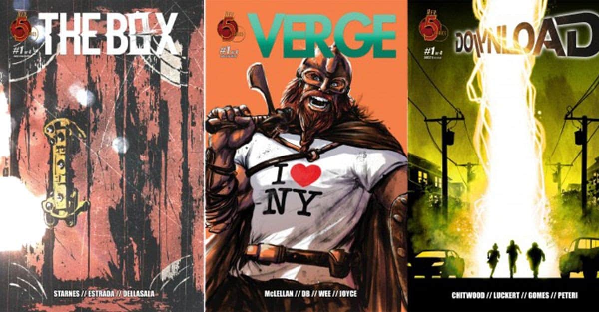 Red 5 Comics will offer a selection of Comi-Con@Home exclusives during the weekend of Comic-Con at home, available through its Comic-Con virtual exhibitor space or Red5Comics.com. Limited to 100 copies apiece, Red 5 Comics will offer Comic-Con only covers of its new series The Box #1, Verge #1, and Download #1. These covers will only be available during the Comic-Con weekend.