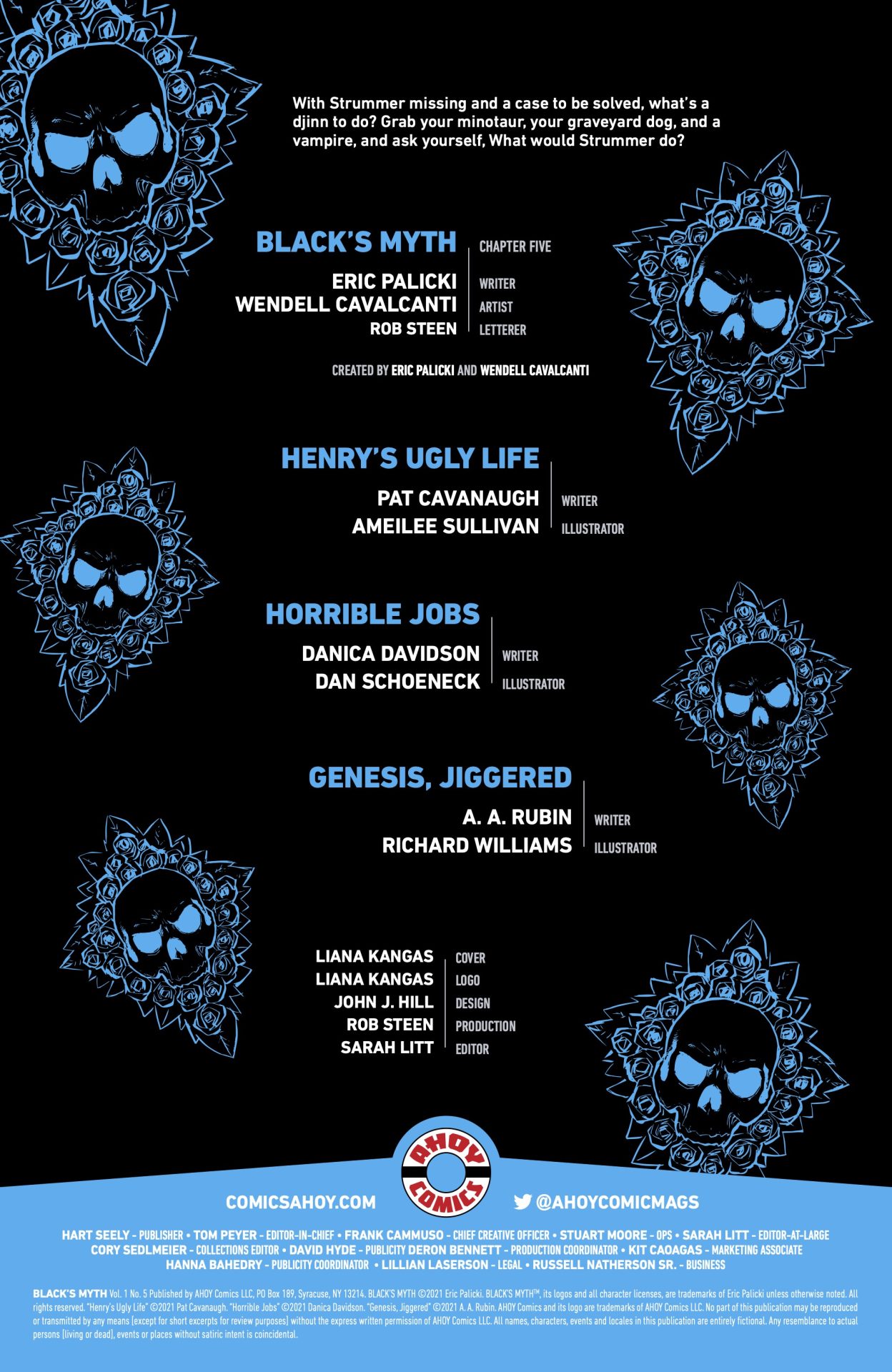 Final issue of the hit werewolf crime story! Will Strummer figure out who shot her? Is it the same person who stole the bullets? Will there be a “why” to go with the “who?” Will Ben and Aster ever get their beer? Find out in the thrilling conclusion of BLACK’S MYTH!