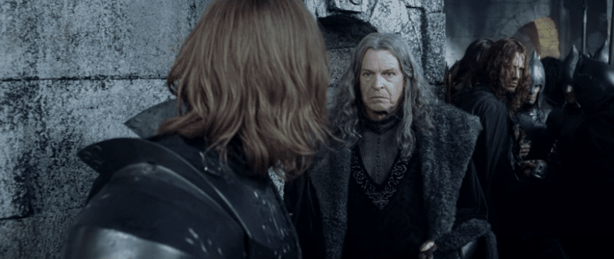 However, I’ve started to connect with Boromir on a personal as well as intellectual level. As I’ve gotten older, I’ve had to take on more responsibilities like a multi-faceted full time job, paying the bills, and relationships to name a few. So, I relate to Boromir’s struggles with balancing what his father Denethor (And, by extension, his home country, Gondor) want him to do, and what he personally wants to do with his life. Boromir’s constant mentions of Gondor and “his city” could easily be substituted with “the project”, “the numbers”, or insert office jargon here. However, you can definitely tell that Boromir cares deeply about his city as evidenced by his monologue to Aragorn in Lothlorien where he uses poetic language and describes Minas Tirith as the “The White Tower of Ecthelion, glimmering like a spike of pearl and silver”. Howard Shore’s score soars during this scene, and for a second, it looks like we might get an Aragorn (Viggo Mortensen) and Boromir team-up to save the day. Alas, that’s not going to happen partially due to Boromir’s father Denethor’s desire for power and a weapon to defend his country.
