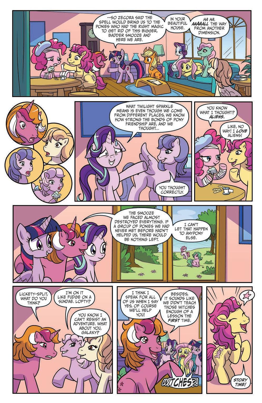 The original ponies are here! North Star, Lickety-Split, Minty, Rosedust, Lofty, and more team up with Starlight Glimmer, Twilight Sparkle, and the rest of the gang to get to the bottom of the strange, havoc-wreaking Smooze.