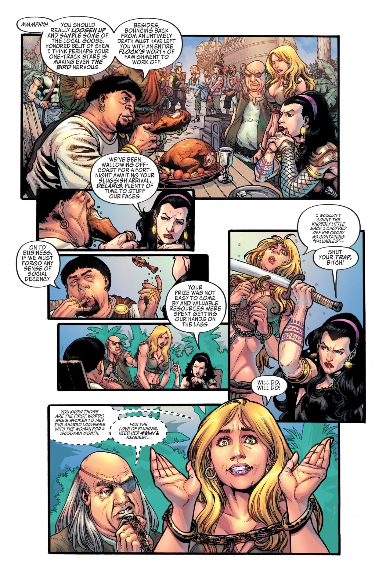 Rising from a watery grave, Belit once again finds herself commanding a ship, sailing the seas in search of adventure…and answers. But when a deal goes wrong, she finds herself teamed up with the woman she was holding prisoner: the equally beautiful and deadly, Valeria.