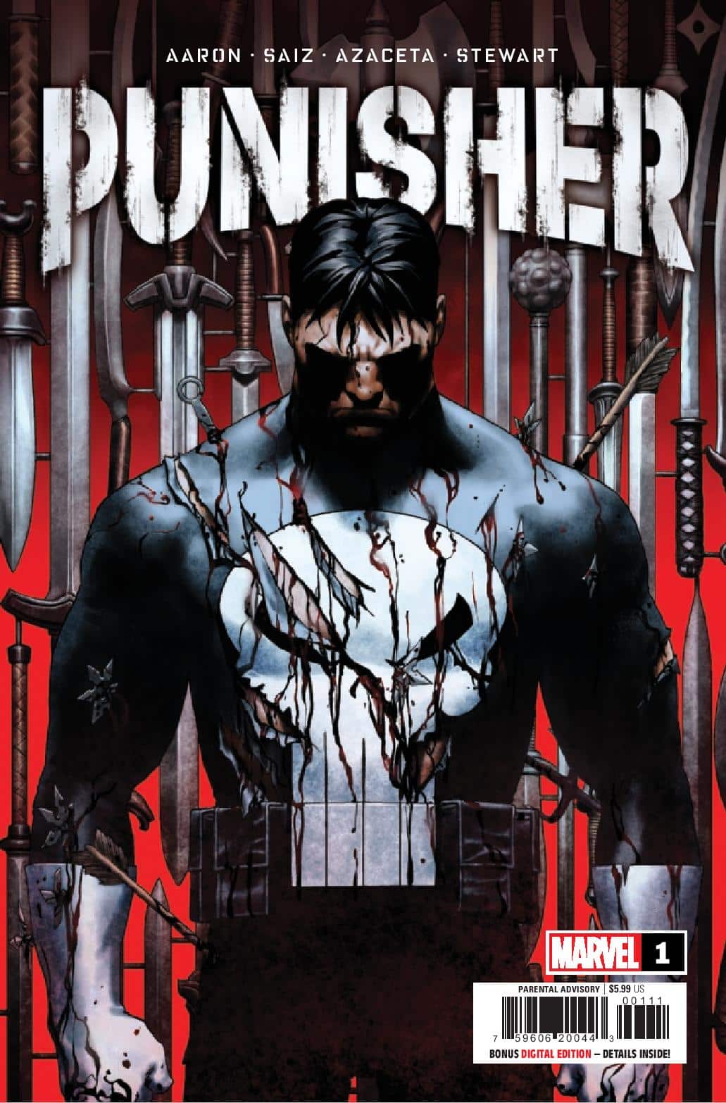 Jesús Saiz and Paul Aza provide the art with colors by Dave Stewart and lettering by Cory Petit. The comic visually is pretty solid but feels a bit conservative in some ways. Hands get chopped off, so do heads, delivering some of the over-the-top violence we expect. Blood flies everywhere. But, there’s also not fetishistic dance of blood, gore, and destruction we’ve seen in previous comics. It’s on the bloodier side of things but generally about what we’d see in recent runs not written by Garth Ennis. It even feels dialed back at points focusing on the Punisher, his words and body language, than the action itself.