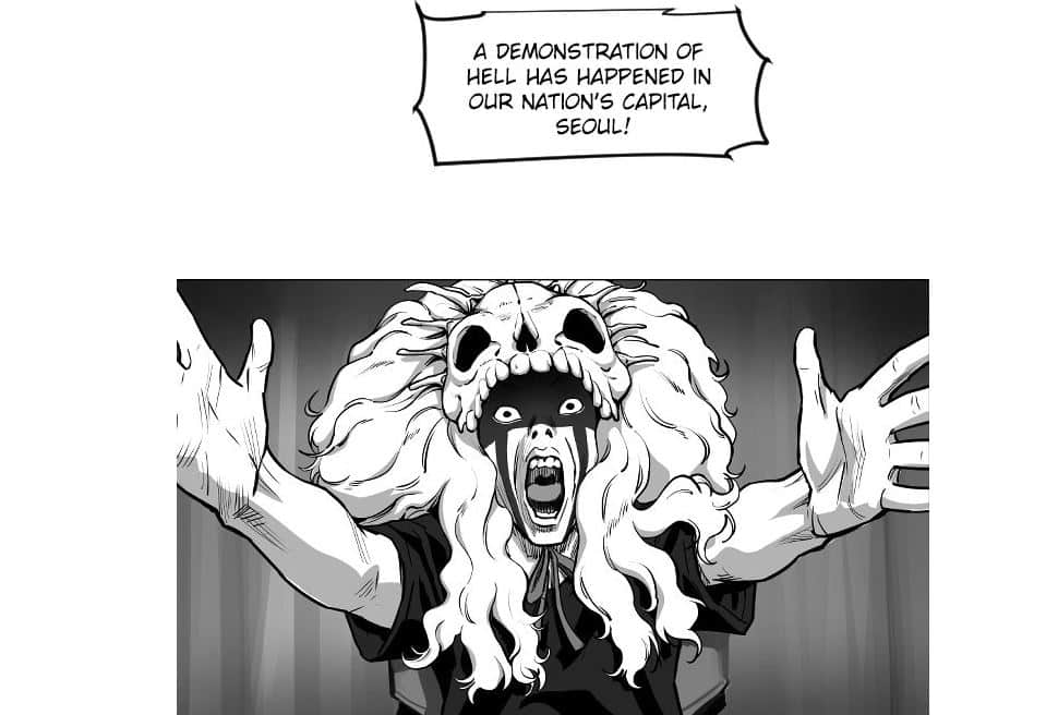 A widowed detective working through the trauma of losing his wife to violent crime, a skeptical lawyer looking out for the best interests of those trying to take advantage of this new Hell business, and a shady religious leader supporting what he proclaims to be God’s work all drive the story forward in the first volume of the manhwa. They each represent a different aspect of faith, morality, and justice, offering readers various entry points into the problem of having what seems to be concrete and reliable affirmation that God exists and that he is watching us.