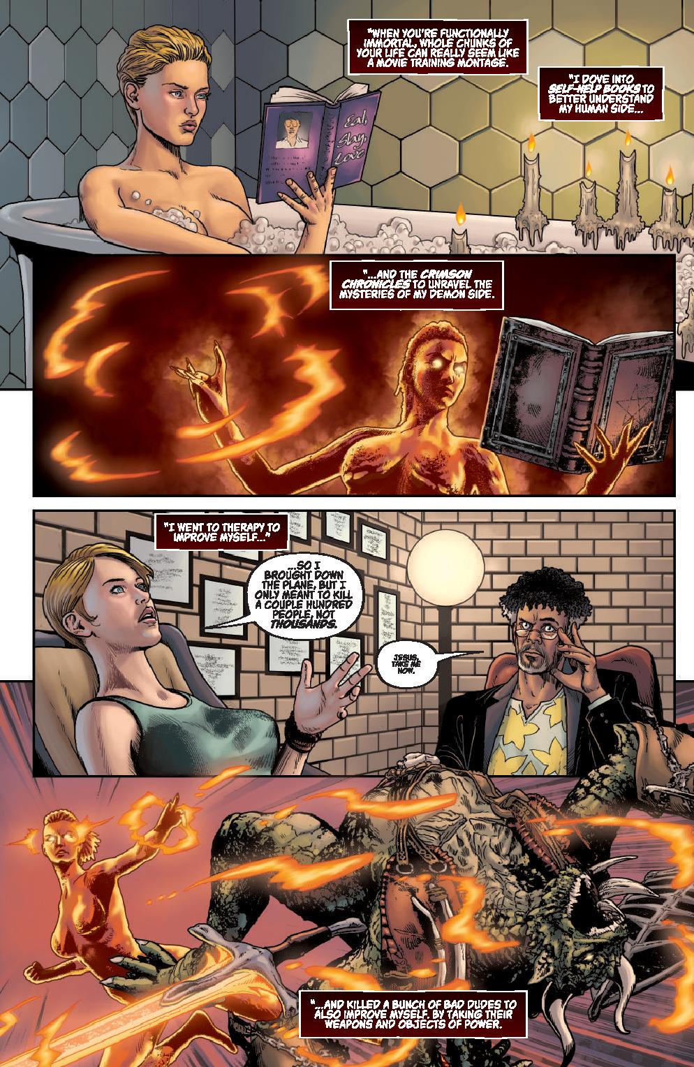 It’s all led up to this! Nyx has been weathering the struggle between her human and demon sides for the past four issues… (not to mention her entire life), and by the time this one’s over, she’ll have found an answer…or she’ll be dead! Probably at the hands of her father, the Mad God Chaos, who has whipped himself into shape after being a bit of a mess in issue #2 and is once again an unstoppable force of the universe. Has our story so far given Nyx anything that can save her, or has it all been a pointless journey of excessive drinking and violence? Like the meme says…why not both?