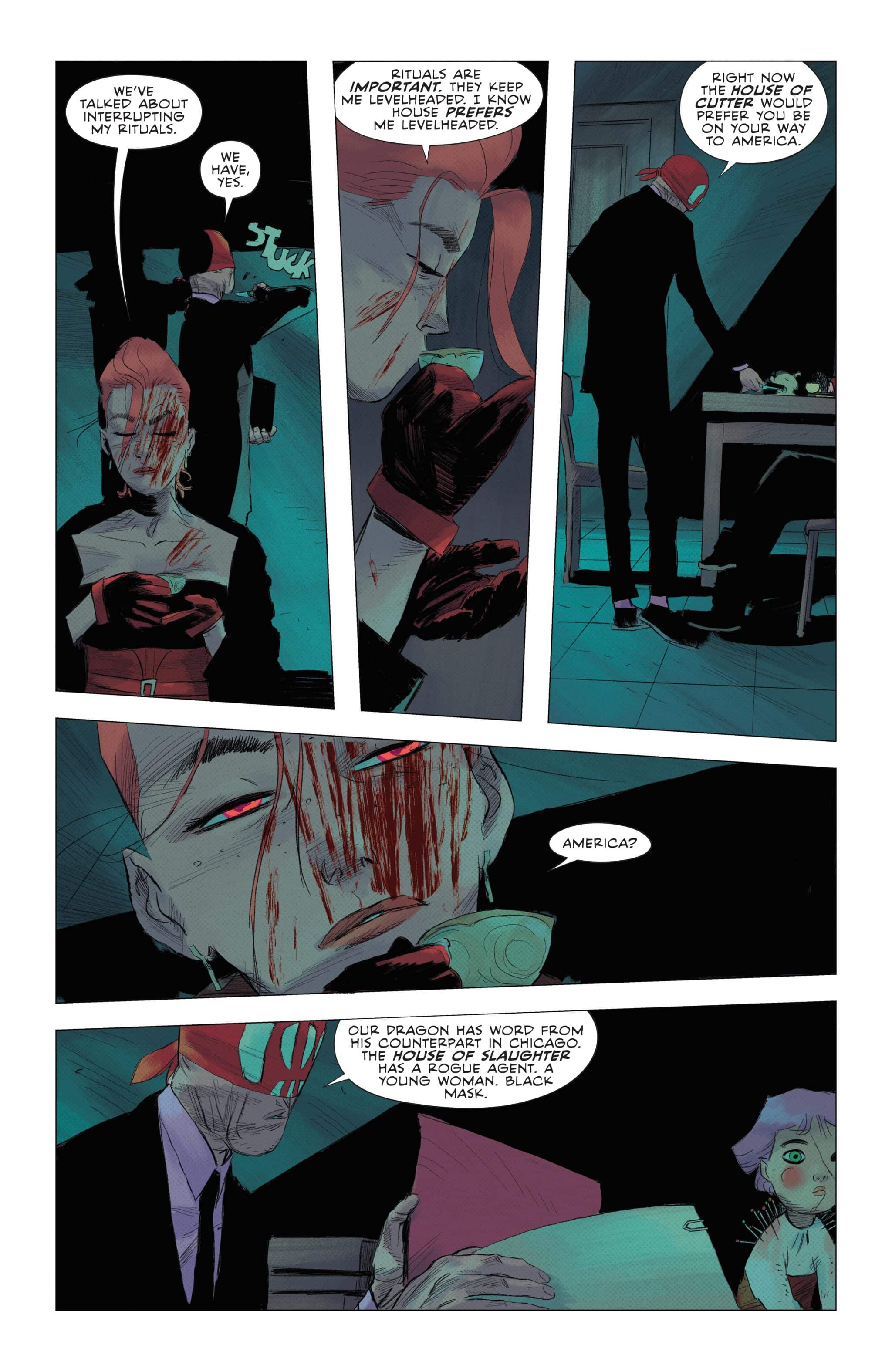 Outside London, the shadowy figure on Erica’s trail relays information to their enigmatic superior about the rogue agent in the House of Slaughter.