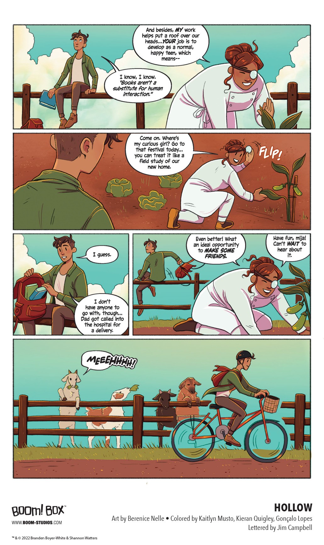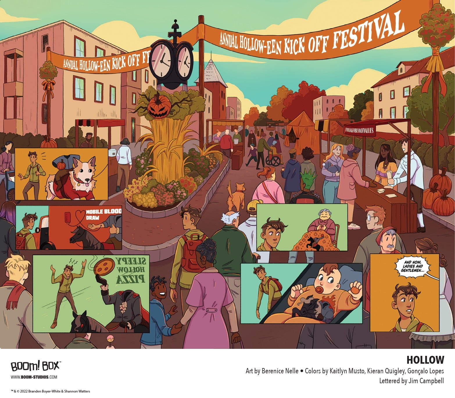 BOOM! Studios has revealed a new look at the brand new original graphic novel, Hollow. From Shannon Watters, the co-creator of the bestselling worldwide phenomenon Lumberjanes, and co-writer debut author Branden Boyer-White, rising star artist Berenice Nelle, and colorists Kaitlyn Musto, Kieran Quigley, and Gonçalo Lopes, comes a supernatural queer romance and adventure set in the infamous town of Sleepy Hollow, available on September 28, 2022.
