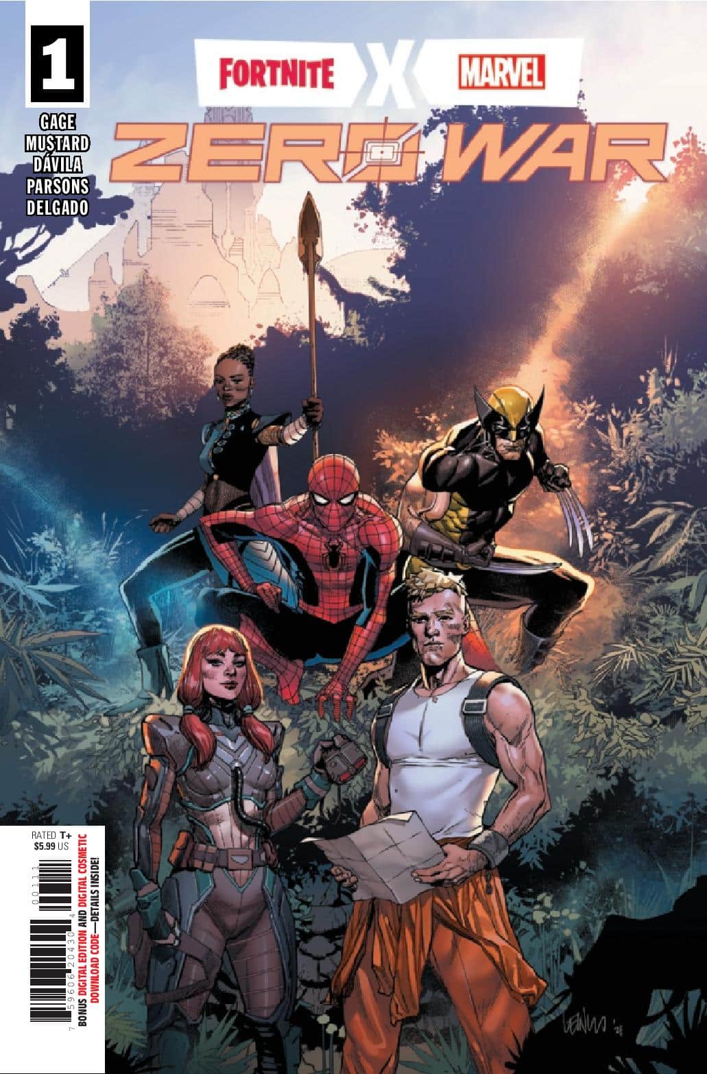 Written by Christos Gage and Donald Mustard, Fortnite x Marvel: Zero War #1 has Spider-Man recruiting heroes to take on some bad guys who seem to control reality. It’s all a little weird and doesn’t feel like it totally jives with the Marvel comic universe but whatever, it’s a threat and gives a reason to fight. Spider-Man gives the rundown to Wolverine as he attempts to recruit him for a mission and it sort of makes sense.