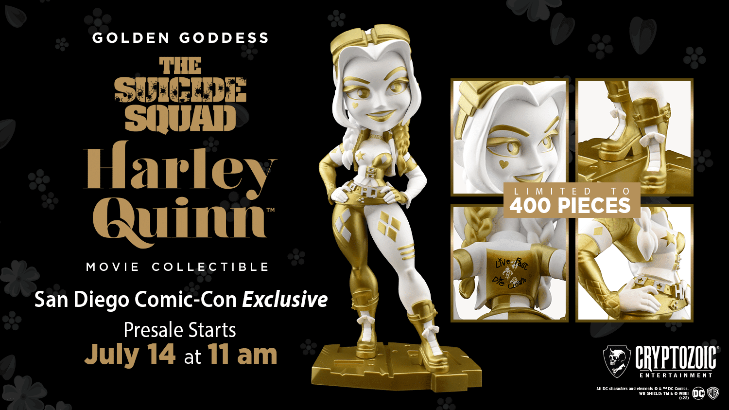 This SDCC will be Harley’s golden moment to shine! Here’s your chance to own the Golden Goddess Harley Quinn The Suicide Squad Movie Collectible designed exclusively for San Diego Comic-Con 2022 (July 21-24). Buy it during the presale and pick it up at Cryptozoic’s Booth #115 during the show.