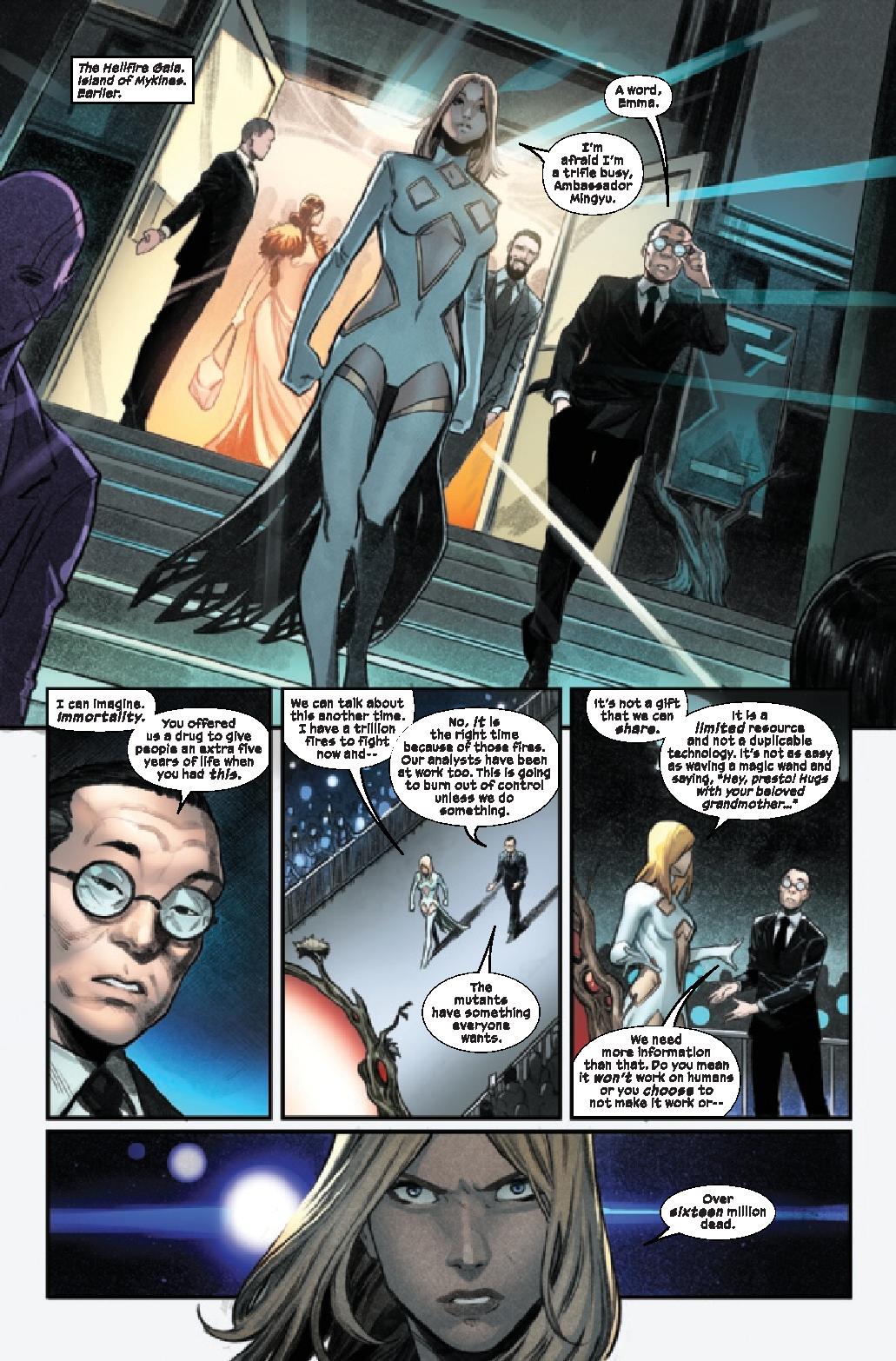 Emma Frost will do anything to protect the children, including the metaphorical child that is the Hellfire Gala. Last year’s was a fantastic success. She would not like it if someone ruined the second. She would not like it at all. But don’t worry, I’m sure it’ll go fine.