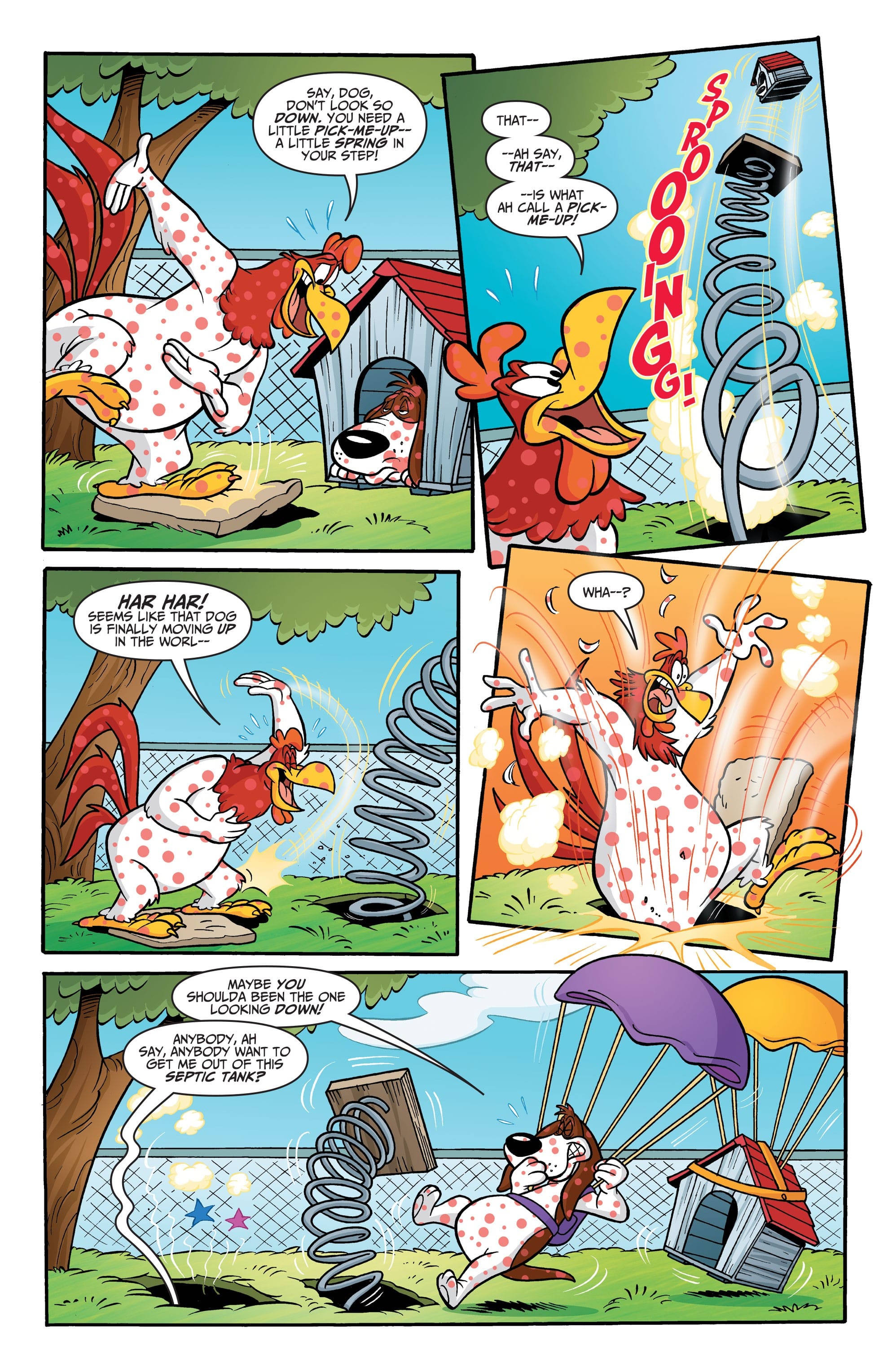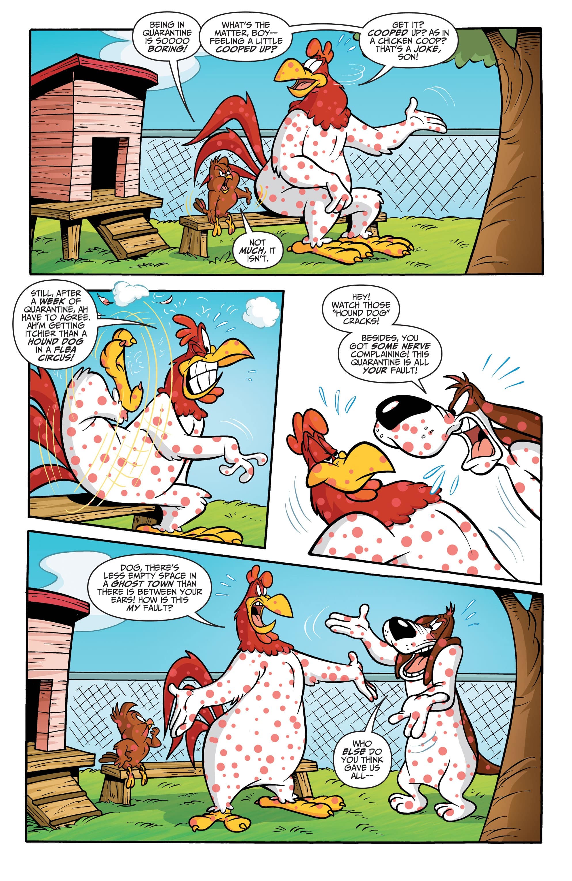 It was bad enough when Foghorn Leghorn came down with a bad case of (what else?) chicken pox. But now the farmyard is quarantined, and Foghorn’s “cooped” up for a week with his archrival, the Barnyard Dawg. With nowhere to go and nothing to do, an ever-escalating war of pranks and practical jokes begins. How long will it take before the situation blows up out of all proportion?