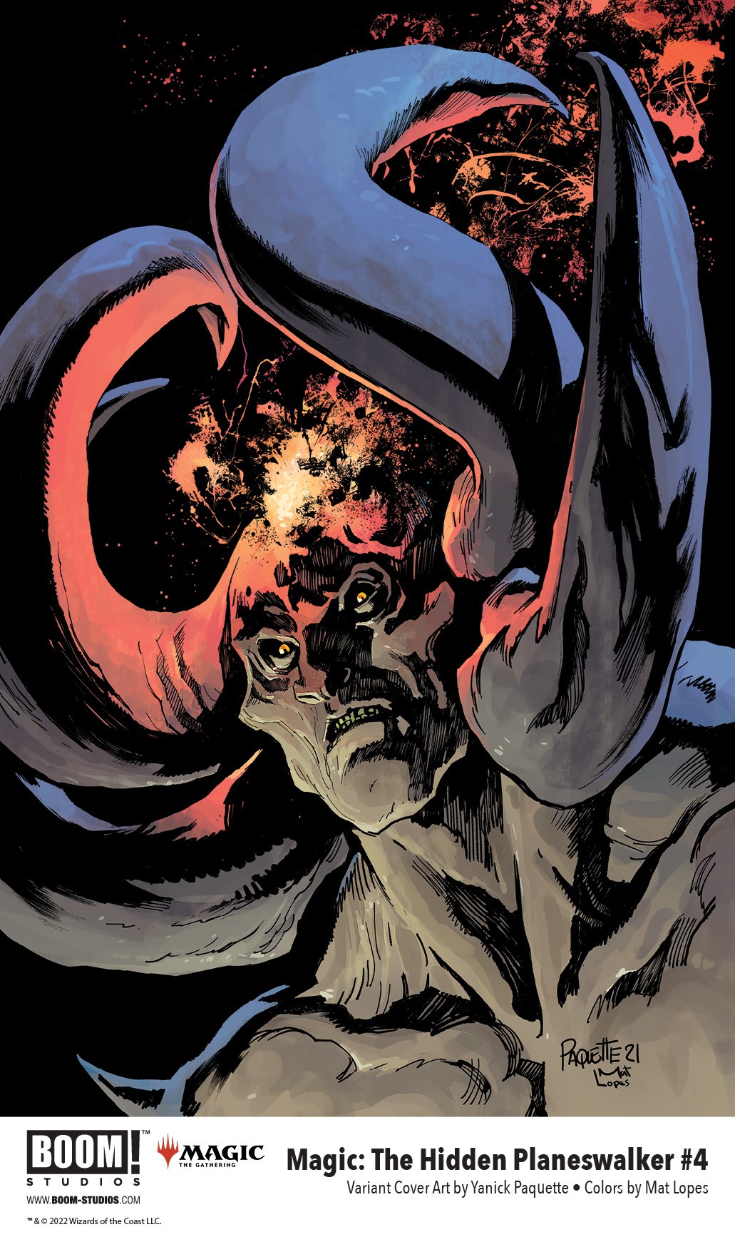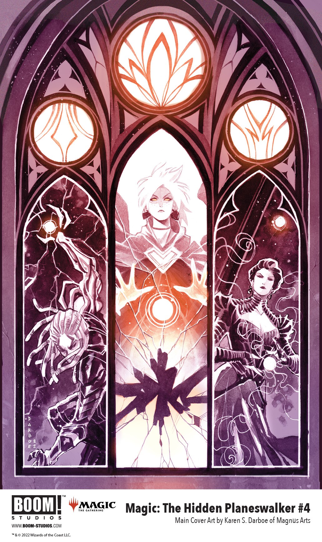 Magic: The Hidden Planeswalker #4 features main and variant cover art by acclaimed artist Karen S. Darboe, Yanick Paquette with Mat Lopes, Ario Anindito, as well as a set of connecting variant cover art by award-winning illustrator Miguel Mercado.