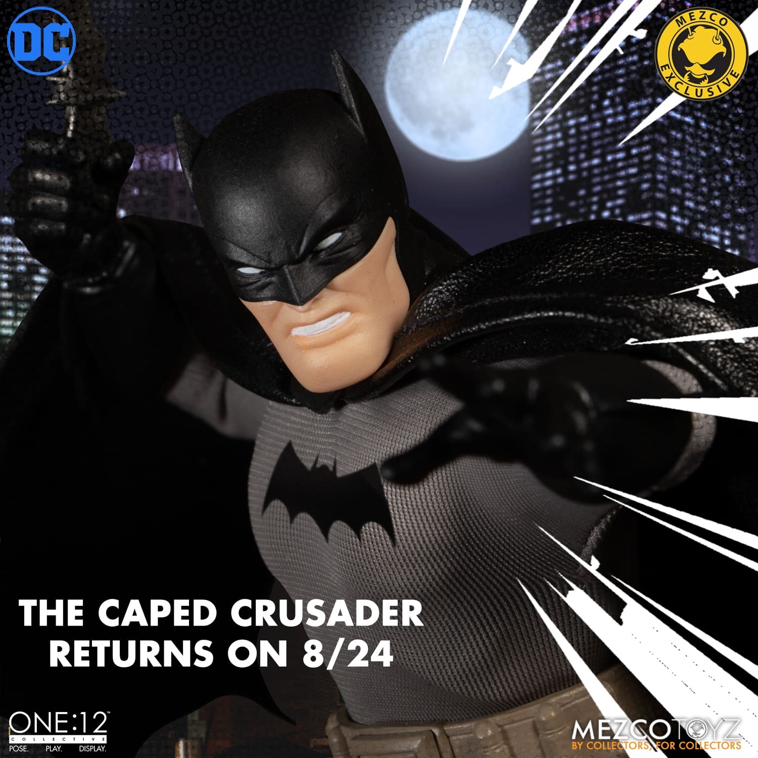 Mezco Toyz has teased a new Batman for its One:12 Collective line. It’s unknown what version this particular release will cover but about 22 of the 55 One:12 Collective releases so far have been Batman or some variant. Guesses as to what this exclusive will bring to the table?