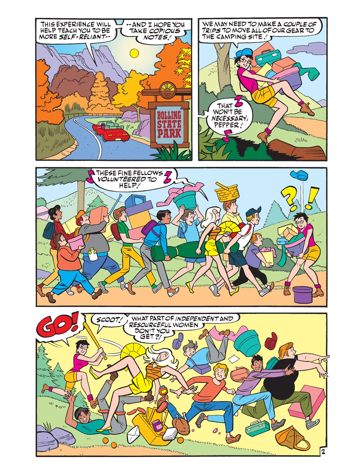 Then, in “Only the Strong Survive,” Pepper decides to help Melody become more self-reliant by taking her on a camping trip. Pepper’s plan is to have Melody take copious notes on how to set up a camping site and survive off the land. Melody proves to be inept at everything… except attracting teenage boys!