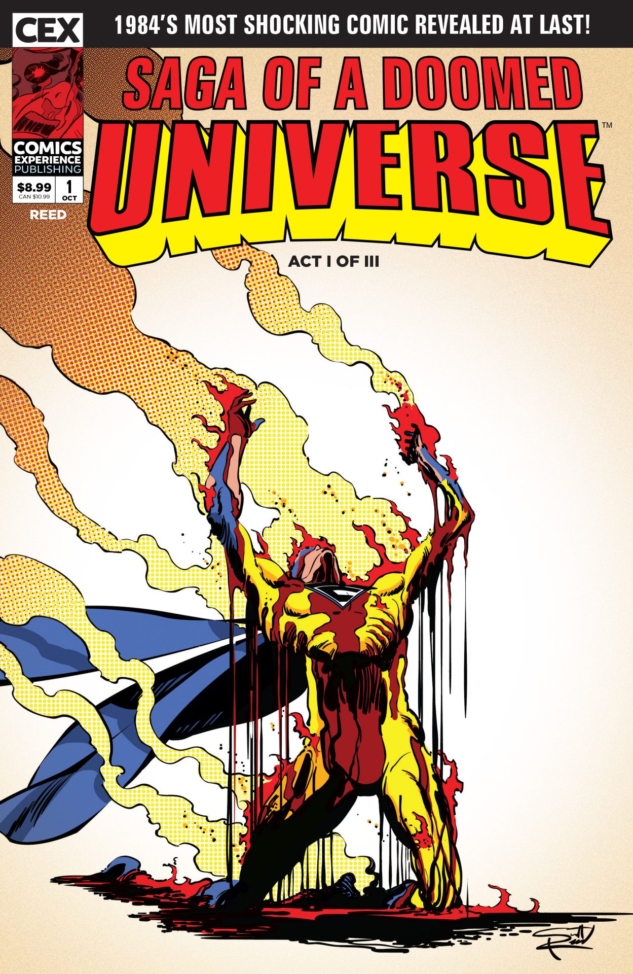 This is it. 1984’s most shocking comic book, revealed at last! The heroes have been murdered — all except for Roy Brannon, a costumed loser who could never become the champion that Earth needs. Now, it will be Roy’s chance to prove everyone wrong…. even if he has to destroy the entire Universe to do it! That alone would make an intriguing comic to read but Saga of a Doomed Universe #1 delivers so much more with a multi-layered story that’s unexpected from that already interesting teaser.