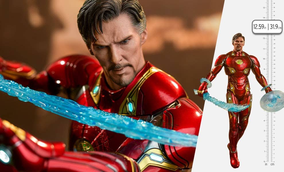 Marvel fans won’t want to miss the Iron Strange (Special Edition) 1/6 Scale Figure by Hot Toys. Avengers: Endgame was an epic film filled with iconic moments and eye-popping effects. But, one scene that didn’t make it into the film featured Doctor Strange wearing Iron Man’s armor. During the outer-space rescue, Tony Stark sends his nano suit to Doctor Strange to protect him so that he can escape from Ebony Maw’s torture needles. The armor then forms itself around the Eye of Agamotto, which turns it into a magically powered suit.
