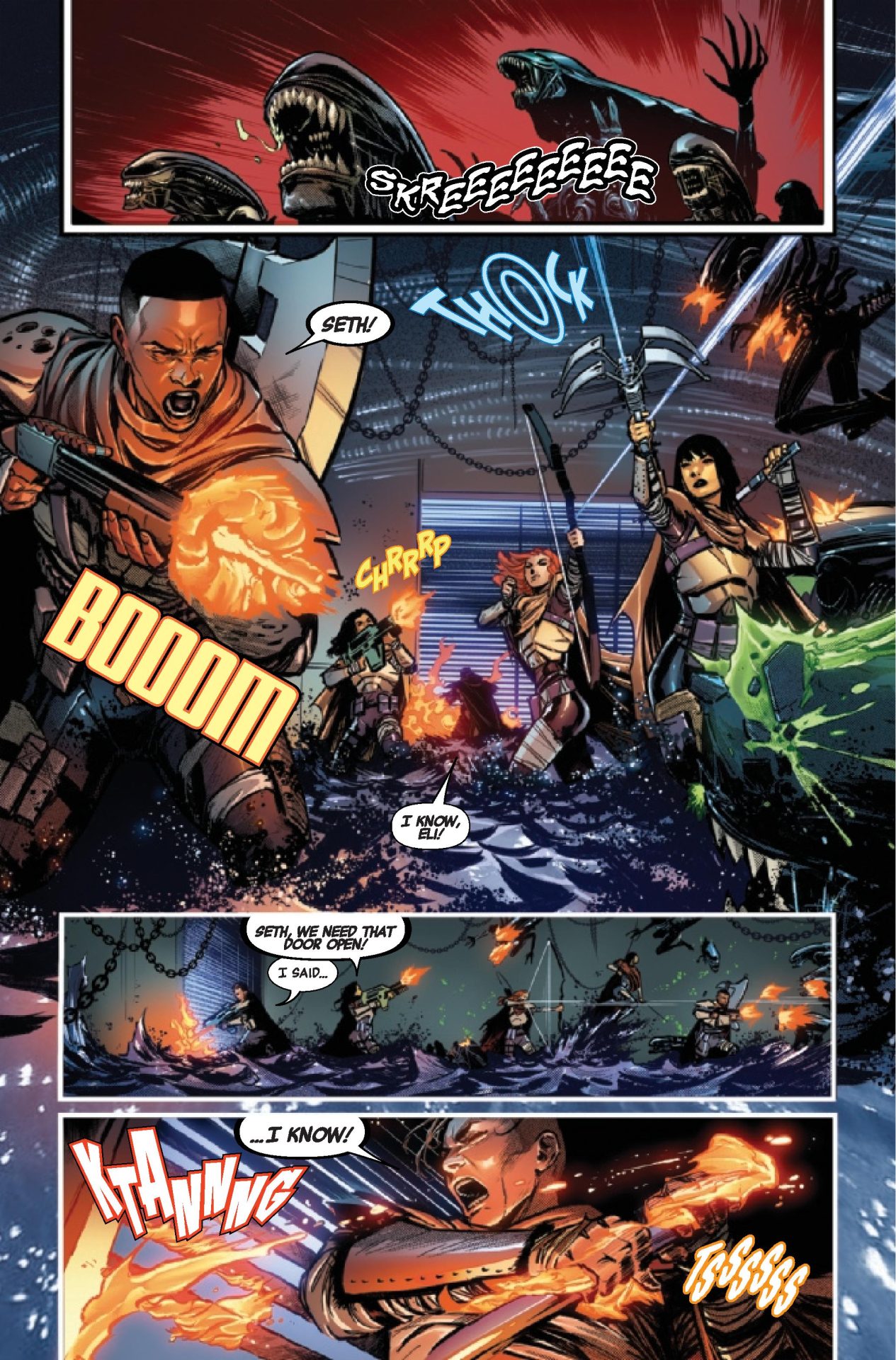 Steel Team’s human allies have led them into an ambush, leaving them for dead in the nest of a vicious Xenomorph Queen. As Steel Team suffers their first casualties, Eli’s trust in Freyja is tested like never before. Meanwhile, the humans suffer the consequences of their betrayal as a new kind of monster awakens inside one of their own.