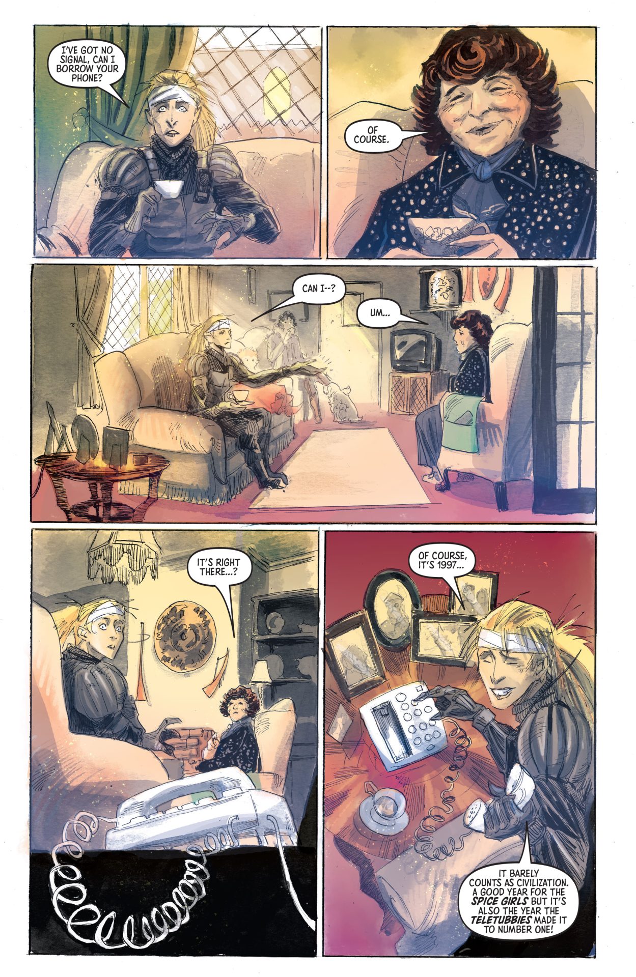 As Anderson and Ratmir meet Becky’s Nan in 1997, Budgie, Alizarine and Mercy are abducted by the Sky Pirate Mooncrow who confronts Alizarine with the crimes committed by the Pantheon.
