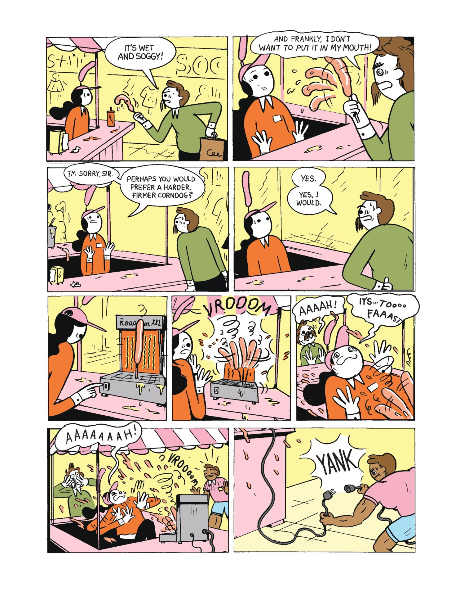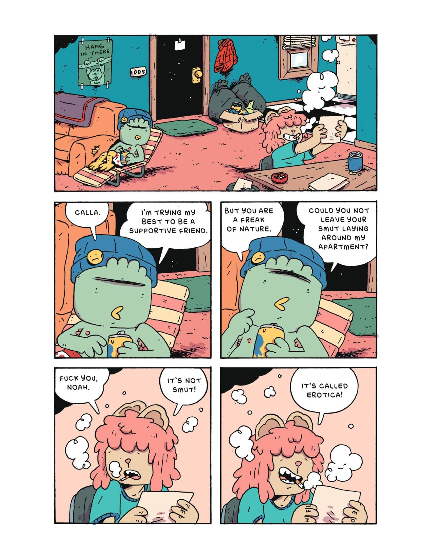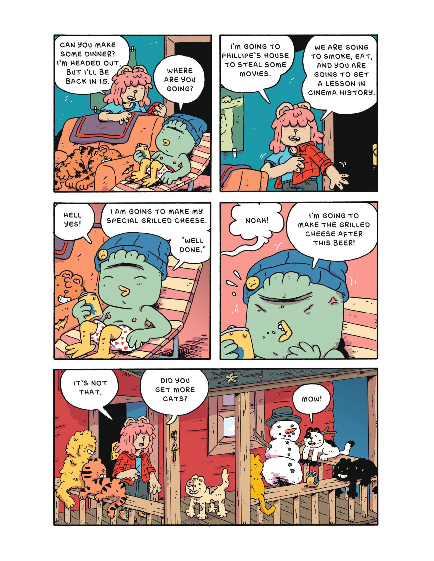 Noah and Calla are high, hungry, and should probably go outside. Unfortunately, the outside sucks. You can’t even get a burger without the whole place almost burning down! Michael Sweater combines ‘90s animation nostalgia, sitcom antics, and a seasoning of stoner comedy in this hilarious new comic.