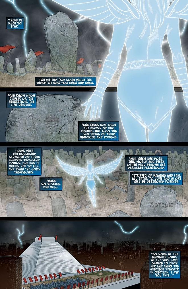 Purgatori’s always pissing somebody off — but this time she may have gone too far! It may have some connection to her growing insanely powerful and probably starting to kill and eat the gods. In fact, that last part for sure. And gods are like potato chips, right? It’s not like she’s going to stop at one. And so, the various pantheons have pooled their not inconsiderable resources to offer up a big prize to whatever psycho manages to kill her. Who wants to try? Hey, who doesn’t?! The creative team behind Vampirella Vs. Purgatori and the recent Purgatori miniseries reunite for the grand third act of this Purgatori saga! Guest-starring Evil Ernie, Vampirella, the Sacred Six… and more!