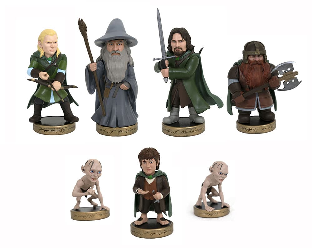 A Diamond Select Toys release! Form the Fellowship! The members of the Fellowship of the Ring come together in the first-ever series of Lord of the Rings D-Formz! Packaged in blind boxes, and arranged in a counter display, these 12 figures include two each of Aragorn, Gandalf, Legolas, Gimli, and Frodo, plus one each of Gollum and Smeagol! Each figure stands 2-3 inches tall, and stands on a disc base. Designed by Barry Bradfield, sculpted by Rocco Tartamella! SRP: $8.99/ea.